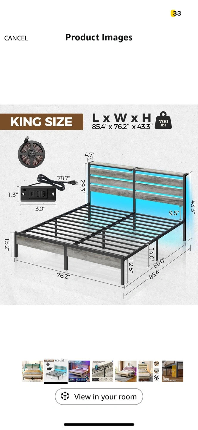 Rolanstar Bed Frame King Size with USB Charging Station, LED Bed Frame with Wood Storage Headboard, Light Grey Metal Platform Bed with Under Bed Storage, No Box Spring Needed, Noise Free(Amazons choice) Currently it is priced at 200 cad plus.