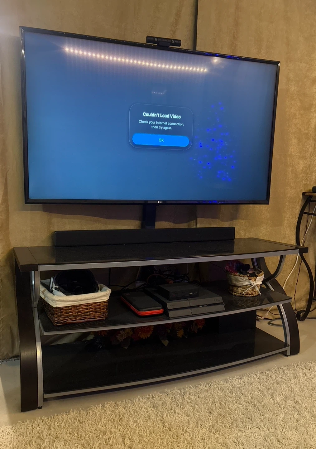 Selling an Entertainment unit. It features multiple glass shelves for storage and display. Holds a tv up to 65 inches and swivels. The unit is in great condition and ready for a new home! TV and items on the unit not included.
