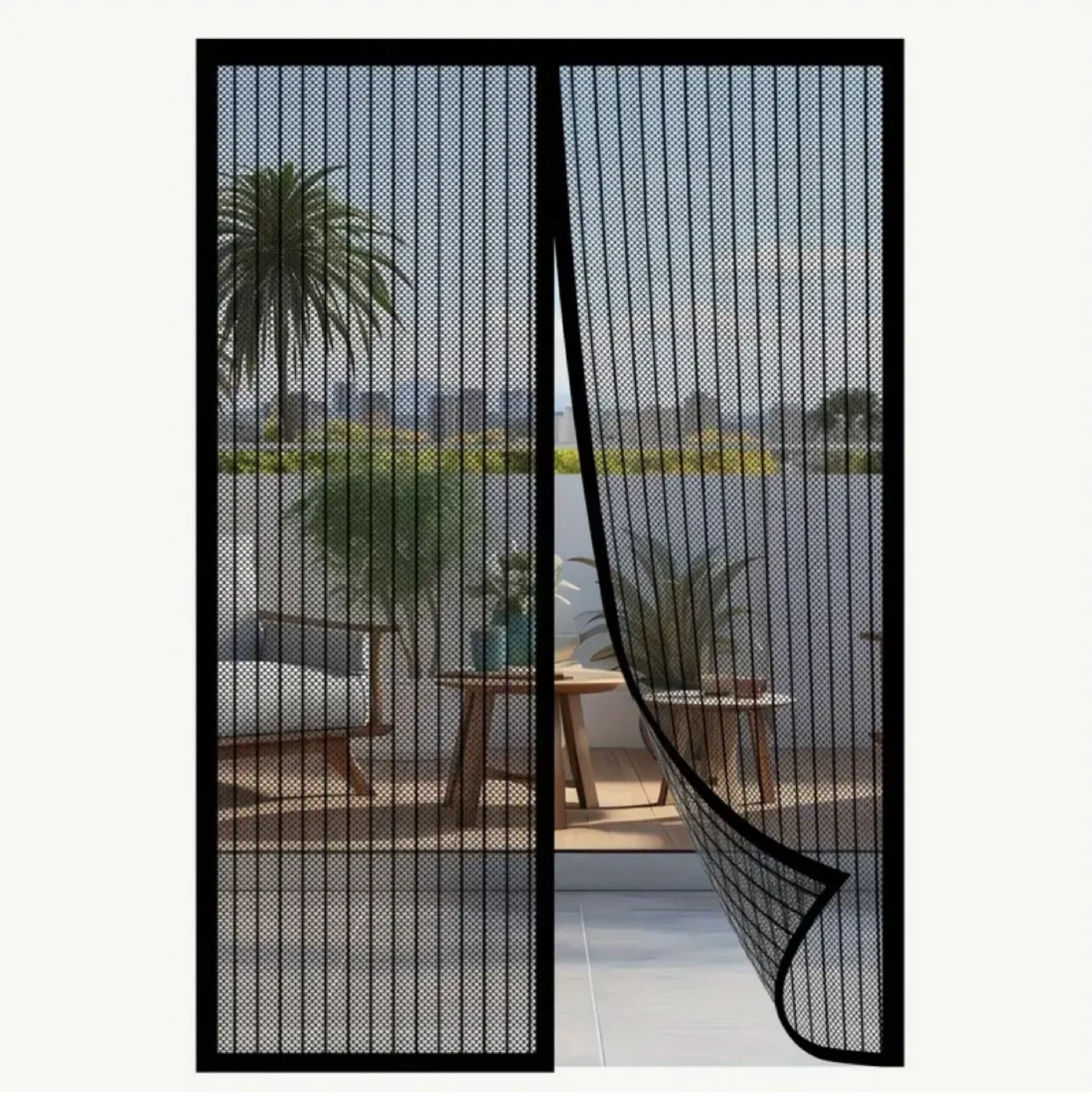 A screen door curtain to keep bugs out! It's designed to fit a door frame size of about 90cm x 210cm (35.43 inches x 82.68 inches).