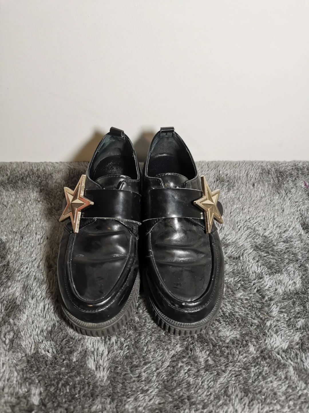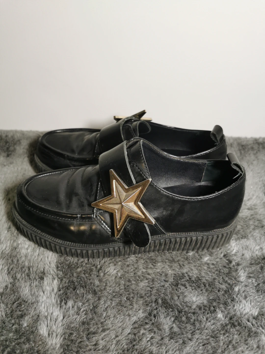 Selling a pair of black loafers with a star detail. They look great and are in good condition!