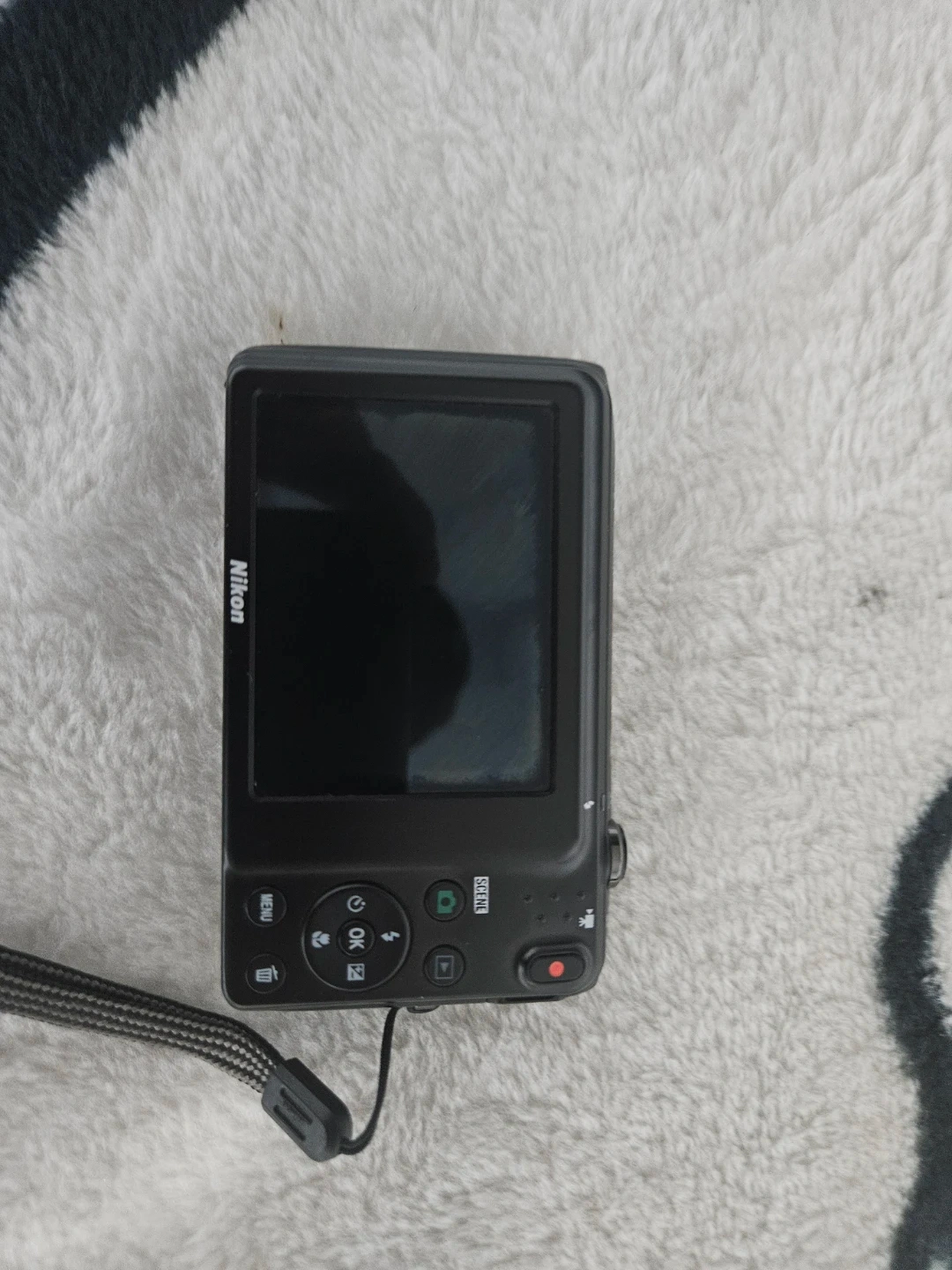Selling a used Nikon COOLPIX digital camera in black. It features 20.1 megapixels and a 7X optical zoom. You can also use glamour retouch and quick effects for your photos. The lens is 4.7-32.9mm 1:3.4-6.4