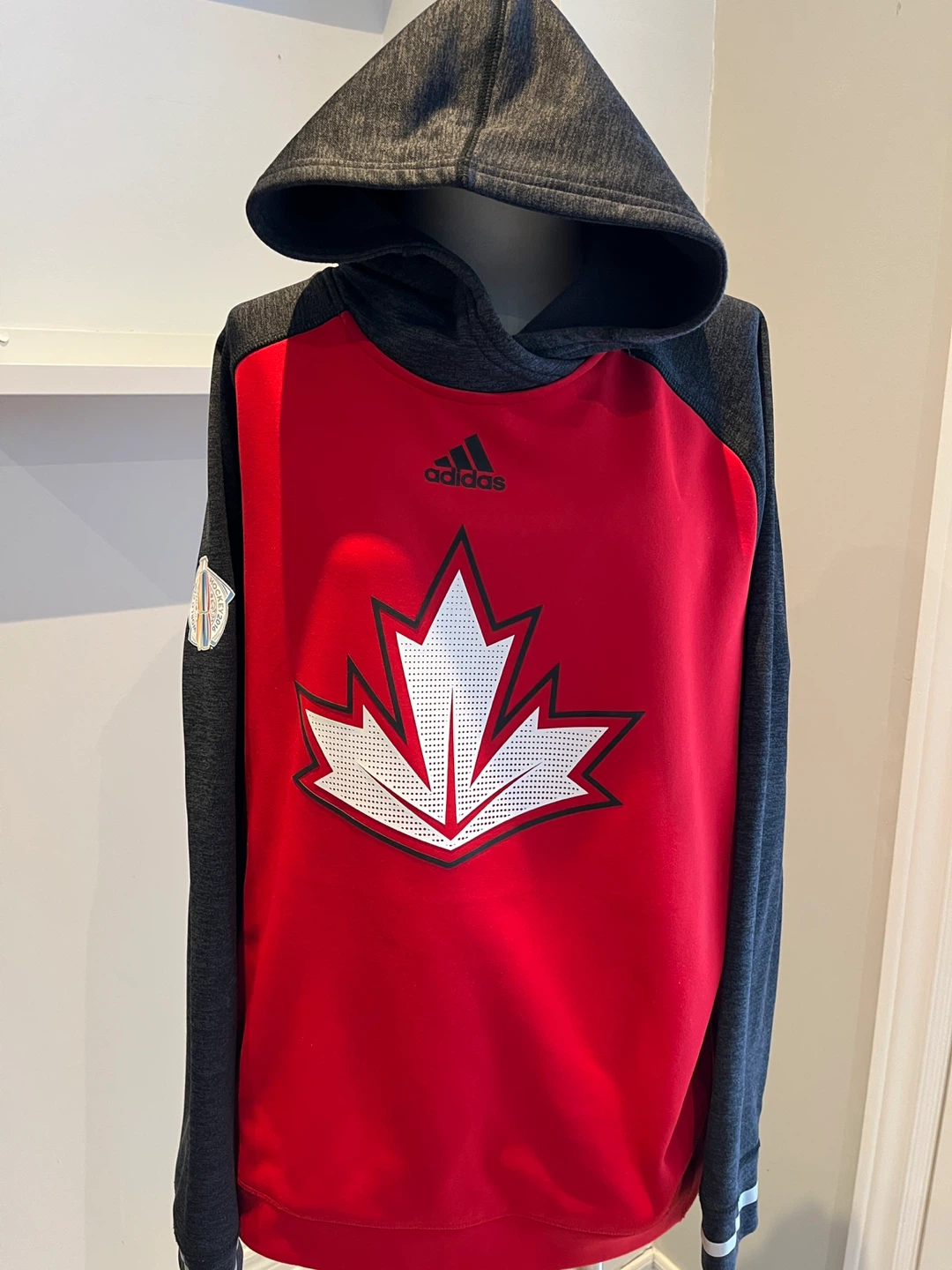 Selling an Adidas Hockey Canada hoodie in red and grey. It features the Hockey Canada logo on the front. Great for showing your Canadian pride!