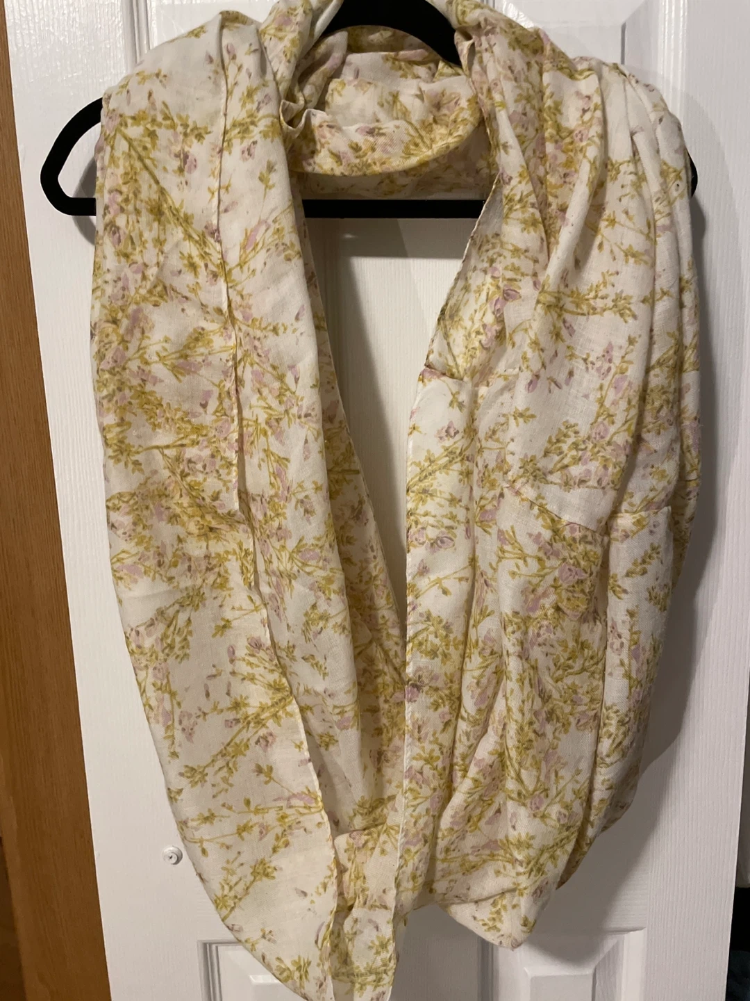 Giving away a gently used H&M scarf with a pretty floral pattern. It's made of 100% polyester and would be perfect for adding a touch of spring to any outfit!