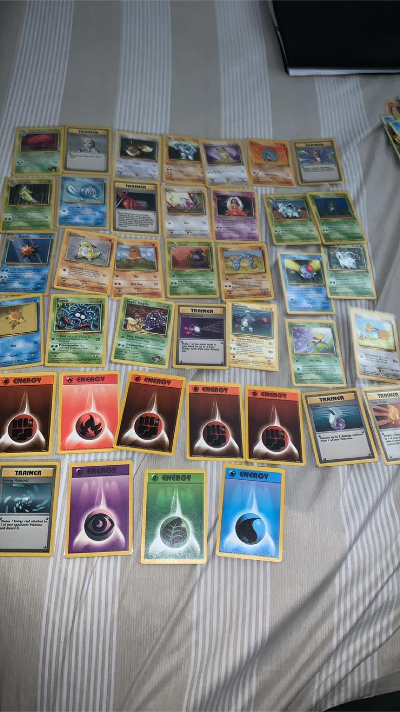 Selling a collection of vintage Pokemon trading cards. Includes trainer and energy cards. Great for collectors or anyone looking to relive the 90s!