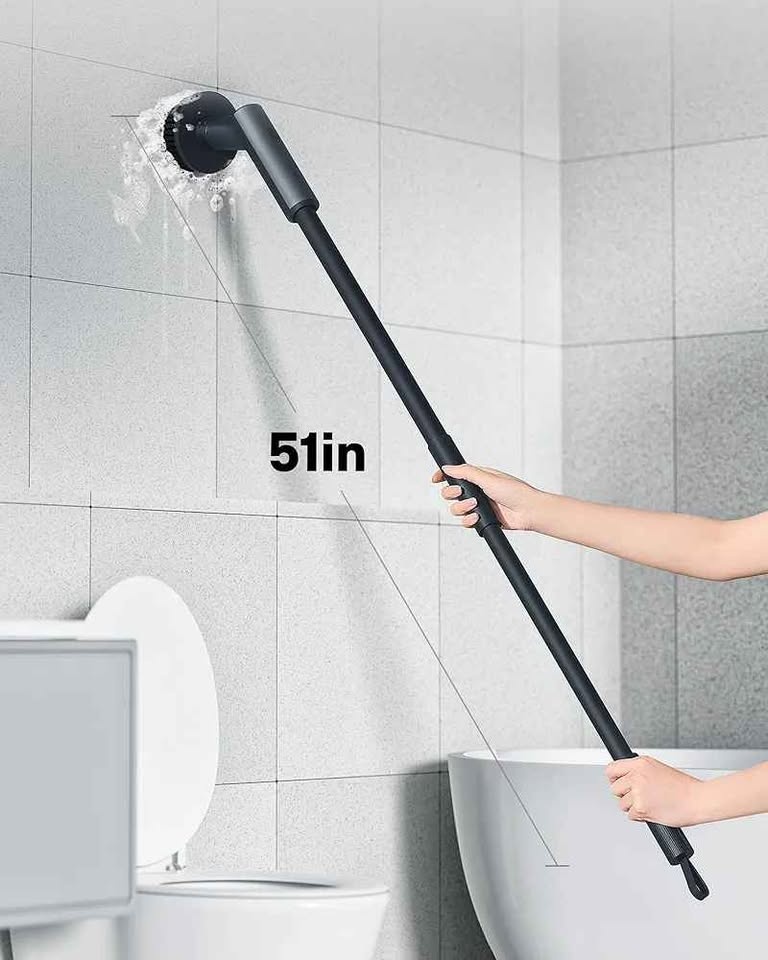 Say Goodbye to Bending or Kneeling: Features a extension pole, the electric scrubber can be adjusted from 35-47in, allowing you to easily reach every corner, even hard-to-reach areas. No need to kneel or bend over to clean those difficult spots.