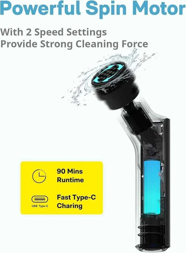 Powerful Dual Speed: The motor of HOTO spin scrubber provides a strong torque of 2.5N·m and 2 adjustable speeds. Use the Soft & Slow option at 220r/min for daily cleaning, or switch to the Strong & Fast option at 300r/min for deep cleaning.