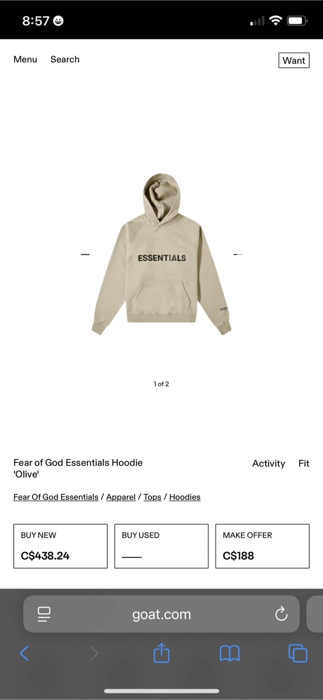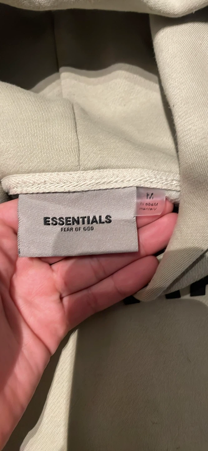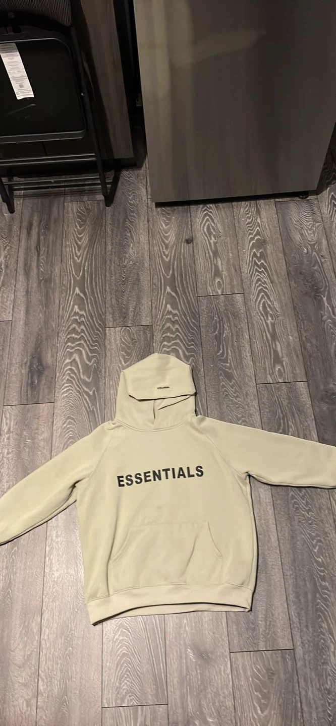 Selling an Essentials Fear of God hoodie in size medium. The hoodie is a neutral, light colour. Worn once selling because it does not fit me