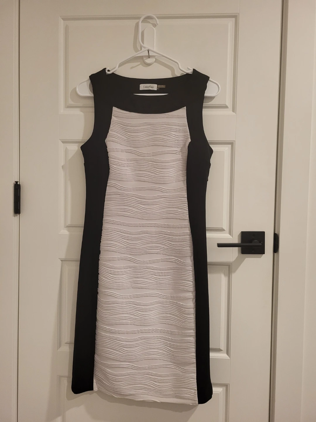 Selling a Calvin Klein dress in black and white, size 6.