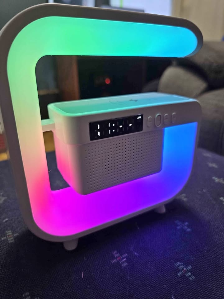 LED Wireless Charging Speaker – RGB Light, FM Radio, Alarm (Bran