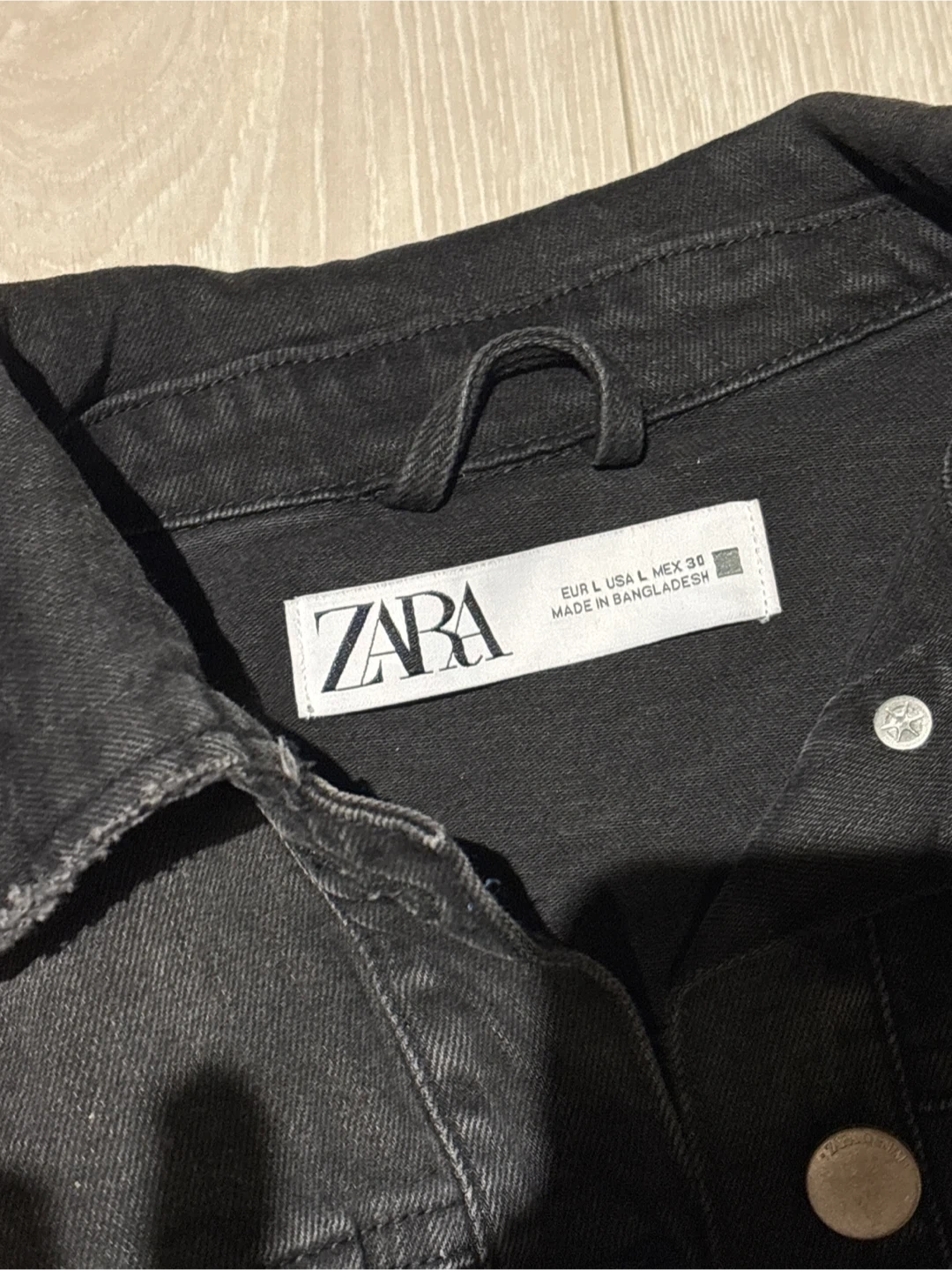 I'm selling a black denim jacket from Zara in size L. It's in great condition and ready for a new wardrobe!It seems to run a bit small. I usually wear a size M.