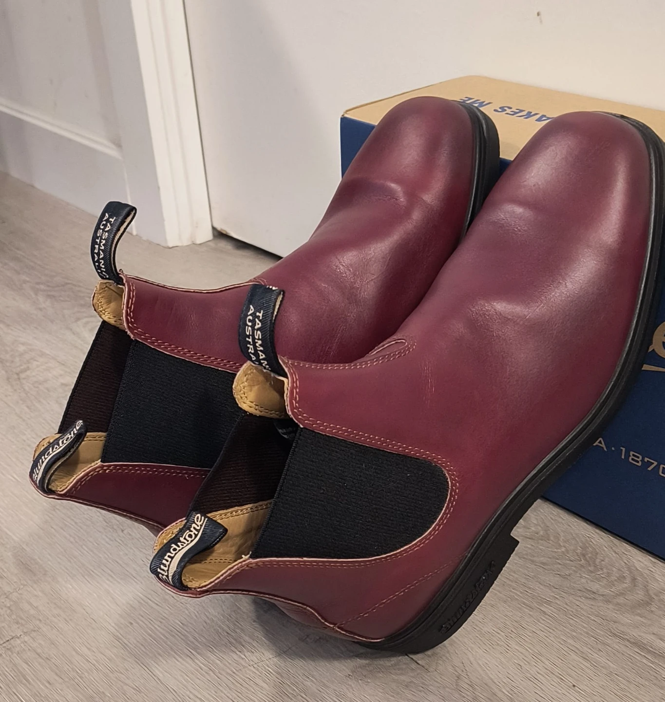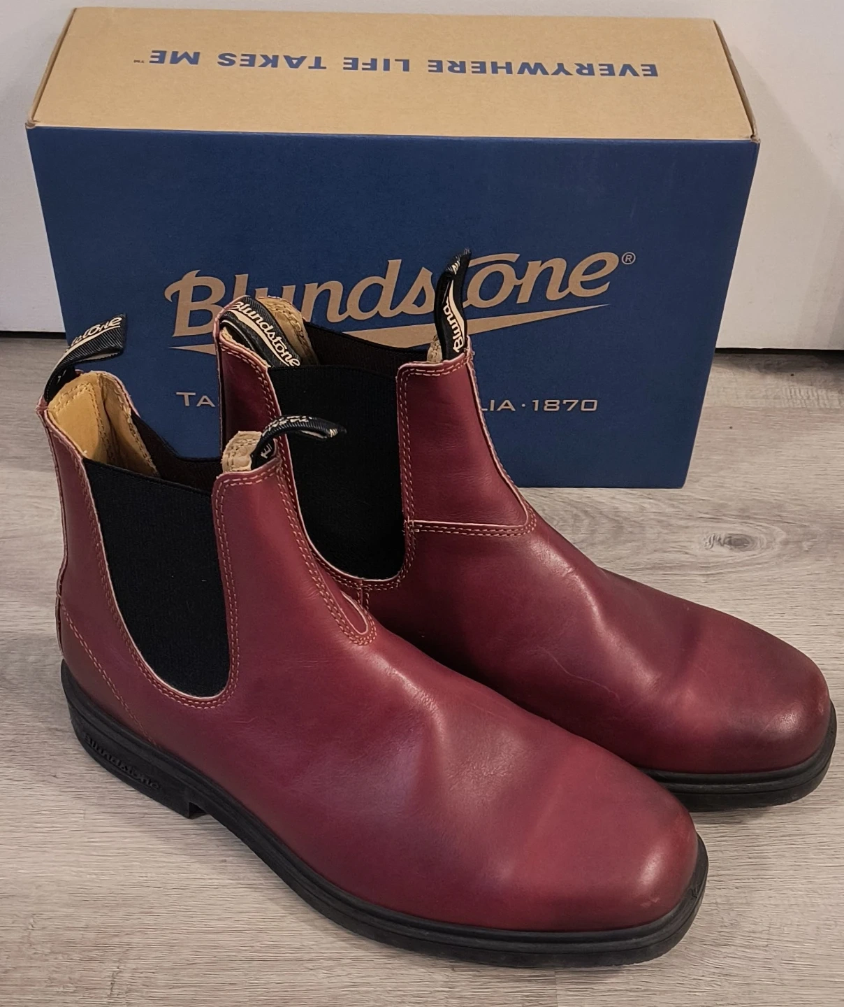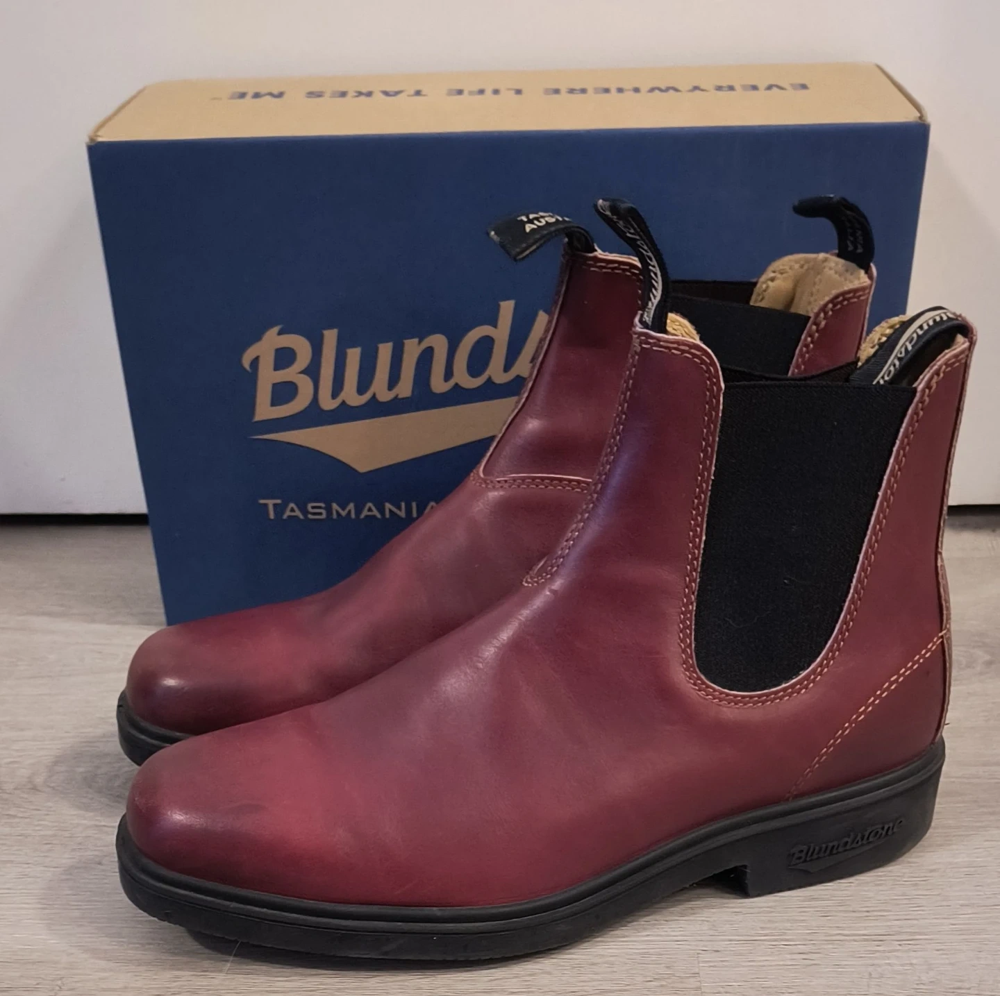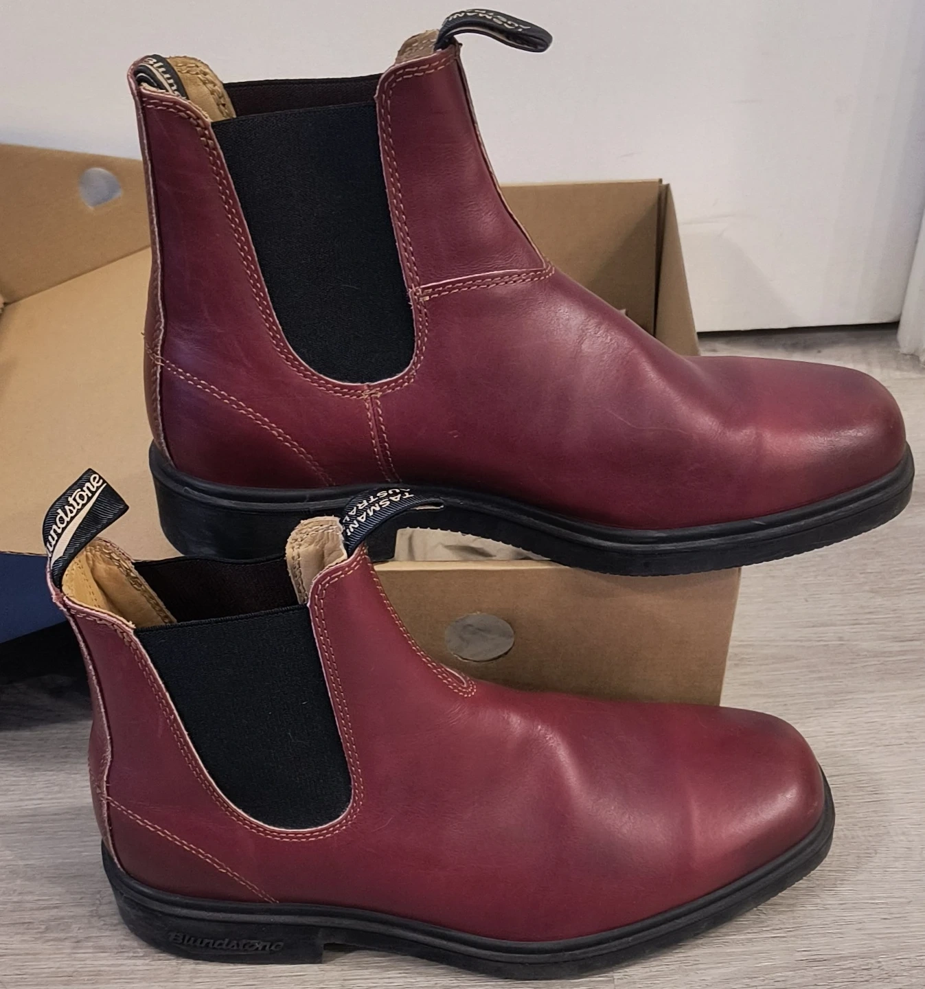 Selling a pair of Blundstone Boots in Burgundy, Size 10. These boots are in Excellent Condition. They are super comfortable and durable, perfect for everyday wear!