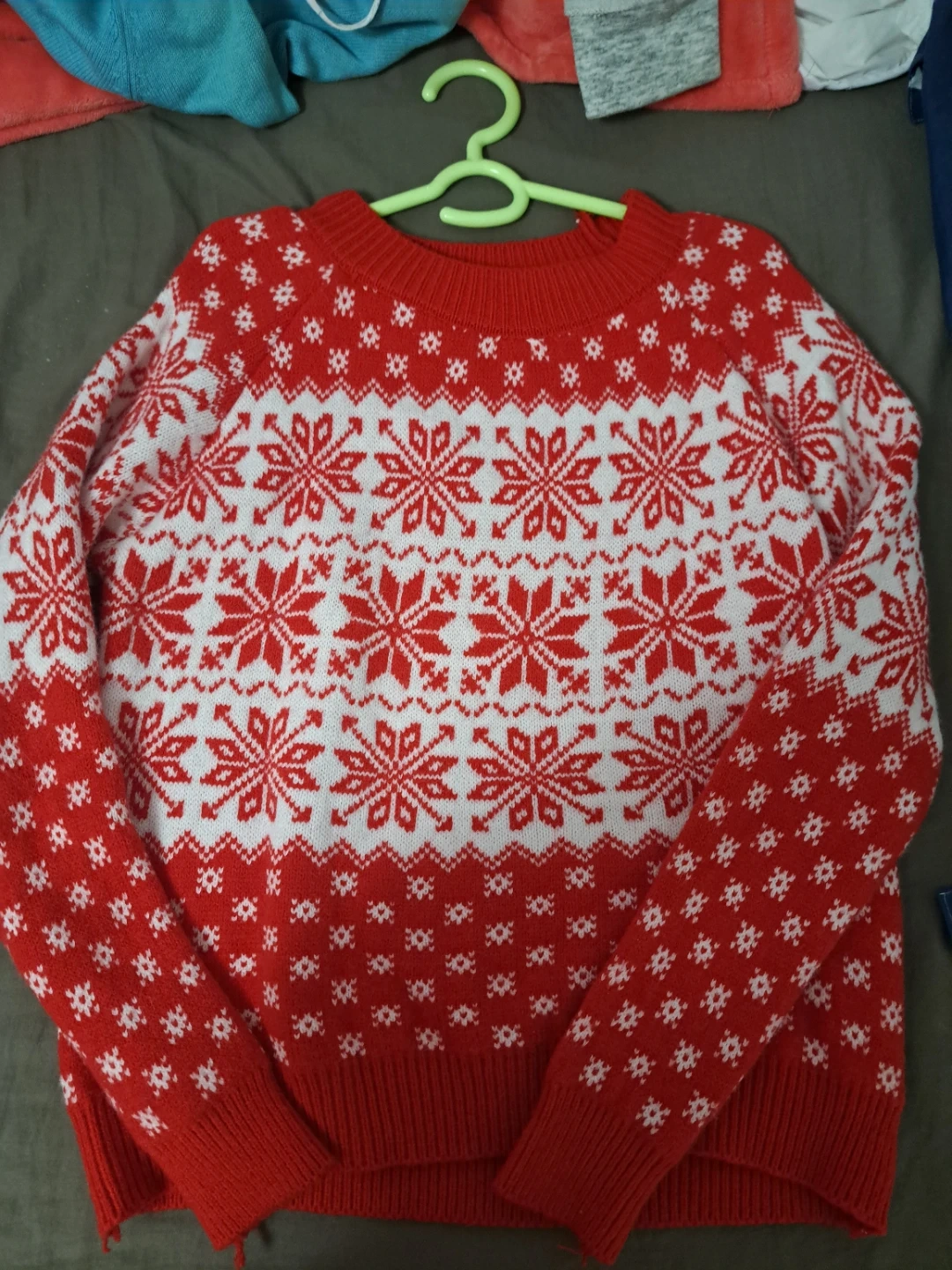 Cozy red and white sweater with a festive snowflake pattern! Perfect for the winter season or holiday gatherings. It's in great condition and ready to keep you warm