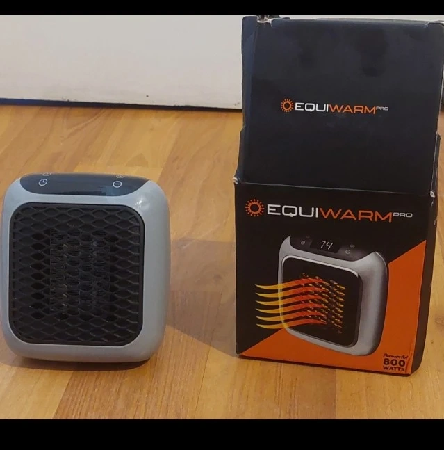 Selling an Equiwarm Pro compact personal space heater in original box. Features a powerful 800 watts, 270° rotation, built in timer, adjustable thermostat and low energy consumption.