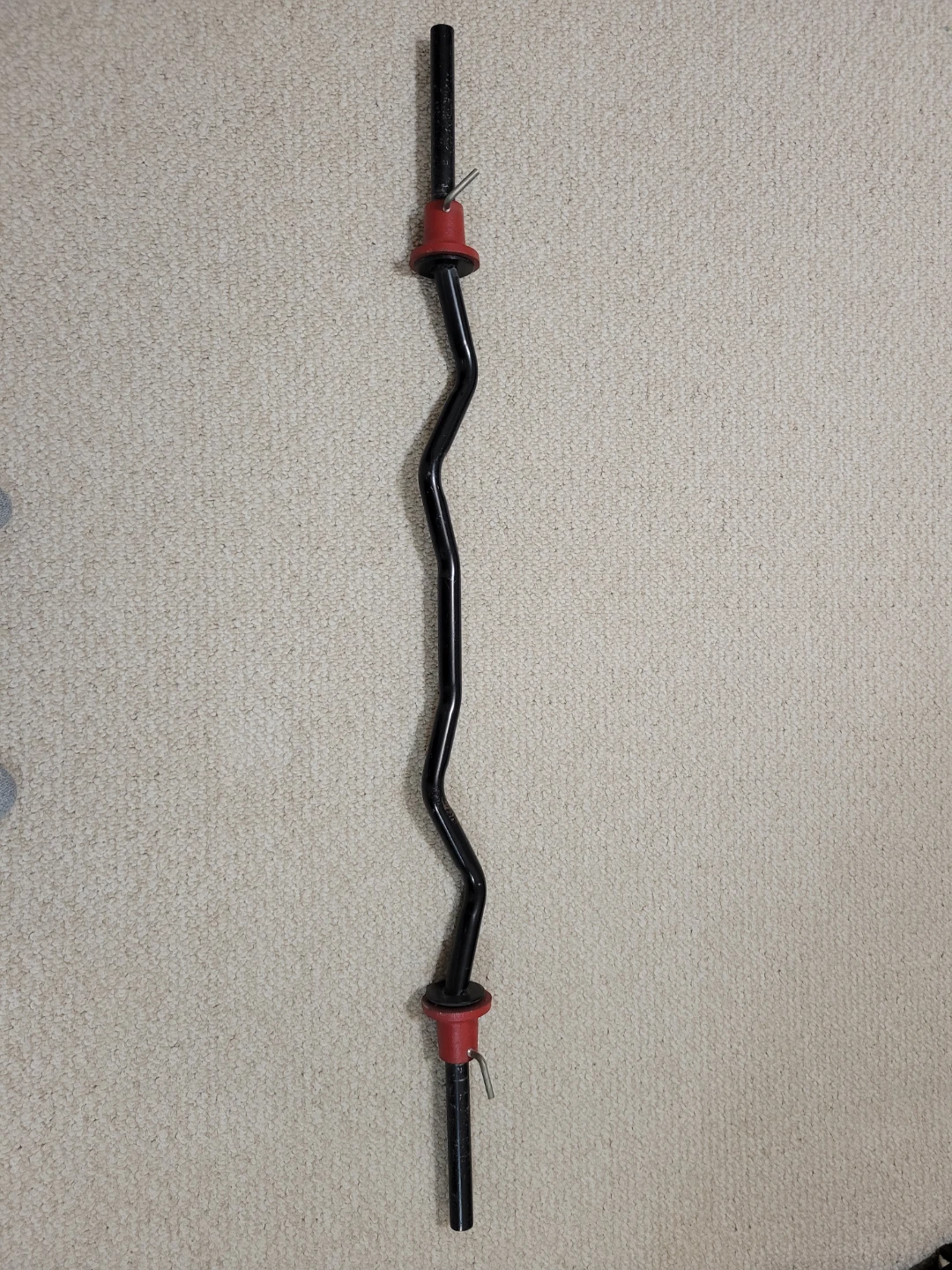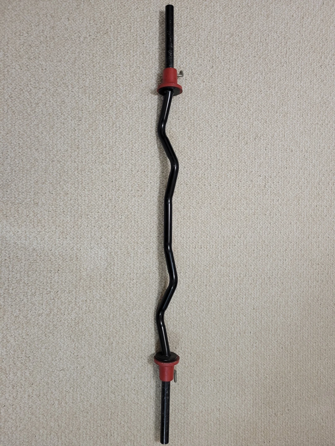 Selling a used EZ curl bar in good condition. It's perfect for bicep curls and tricep extensions. Great for home workouts! Quick release clamps.