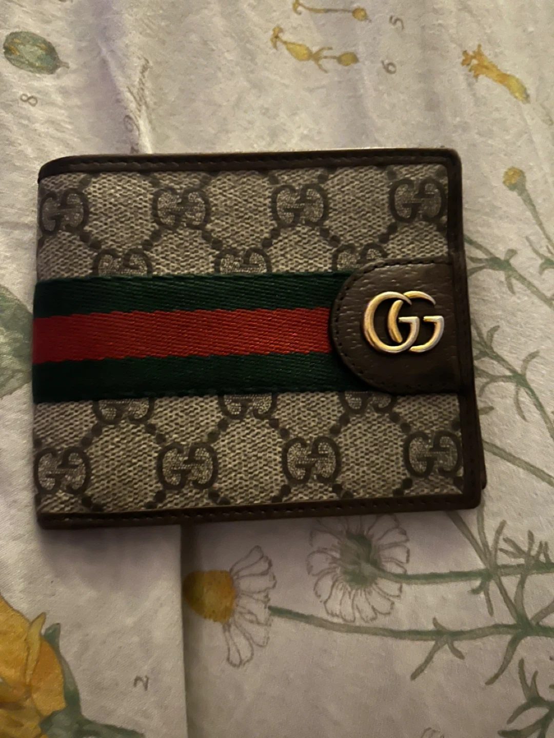 Selling a Gucci GG Supreme wallet. It features the iconic GG pattern with the green and red Web stripe. The wallet is in good condition and has plenty of slots for cards and cash. A classic and stylish accessory!