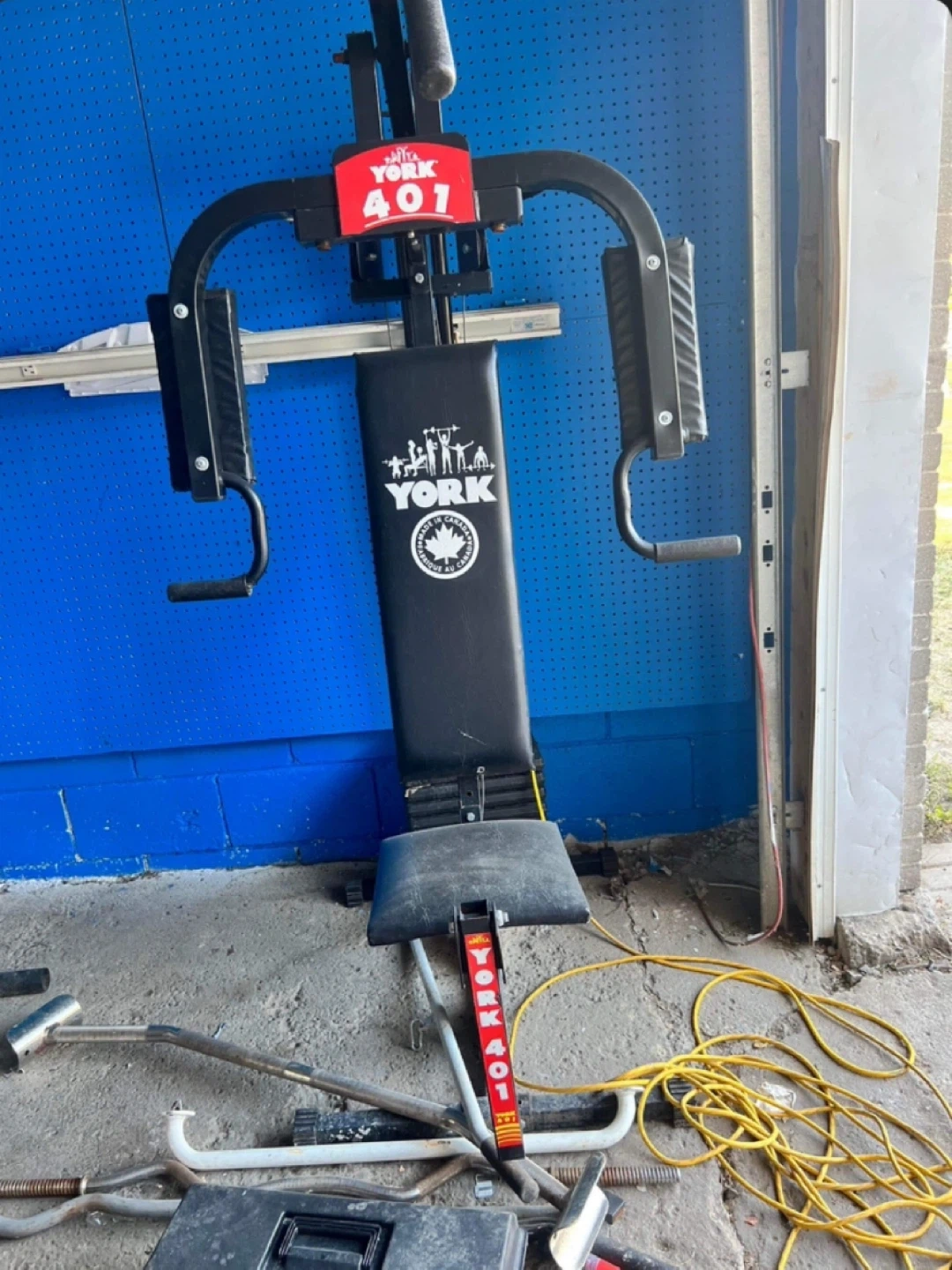 York Fitness 401 home gym. Multi-station weight machine. Used condition. While there may be a few squeaks, a little tender loving care can bring this back to a better condition.