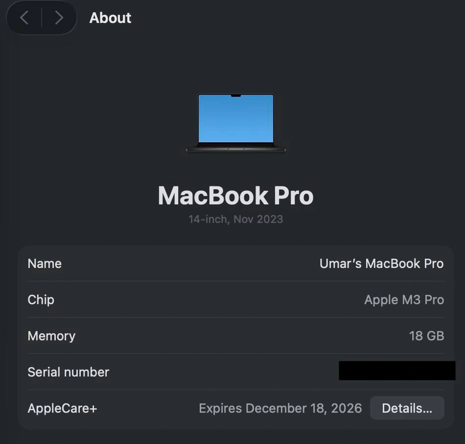Apple MacBook Pro 14'' (M3 Pro, 512 GB) + AppleCare