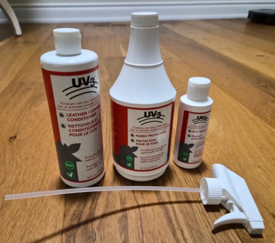 I'm selling UV3 Leather Cleaner and Conditioner. It will keep leather soft, supple, and conditioned on shoes, clothing, and automotive interiors. Also available is UV3 Fabric Protection and UV3 Spot Remover.