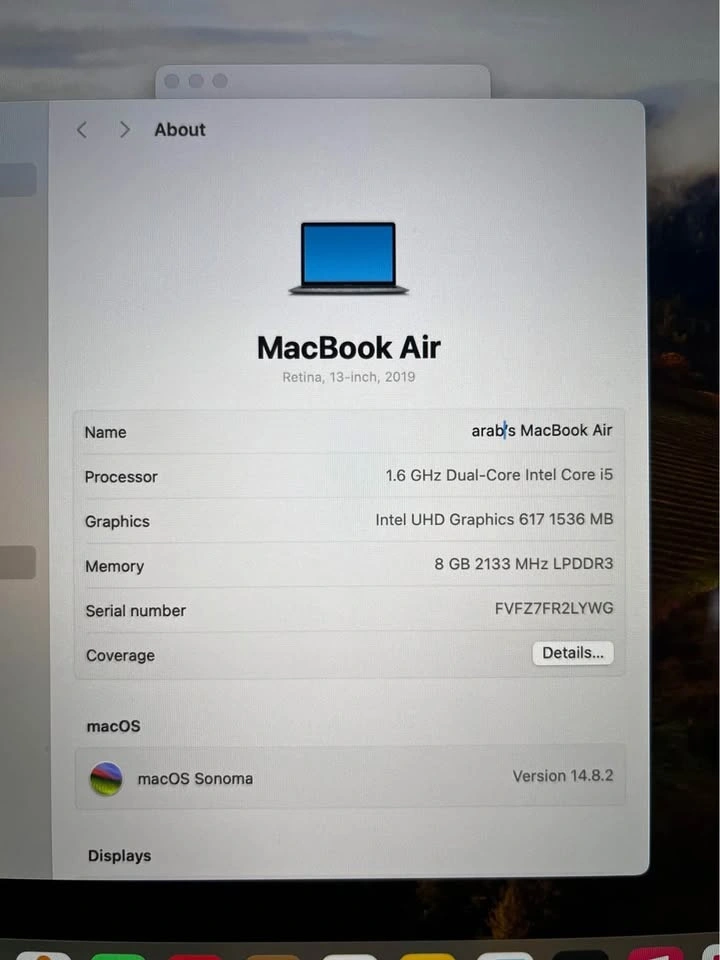 Selling my 2019 MacBook Air (Retina, 13.3”) in good condition.