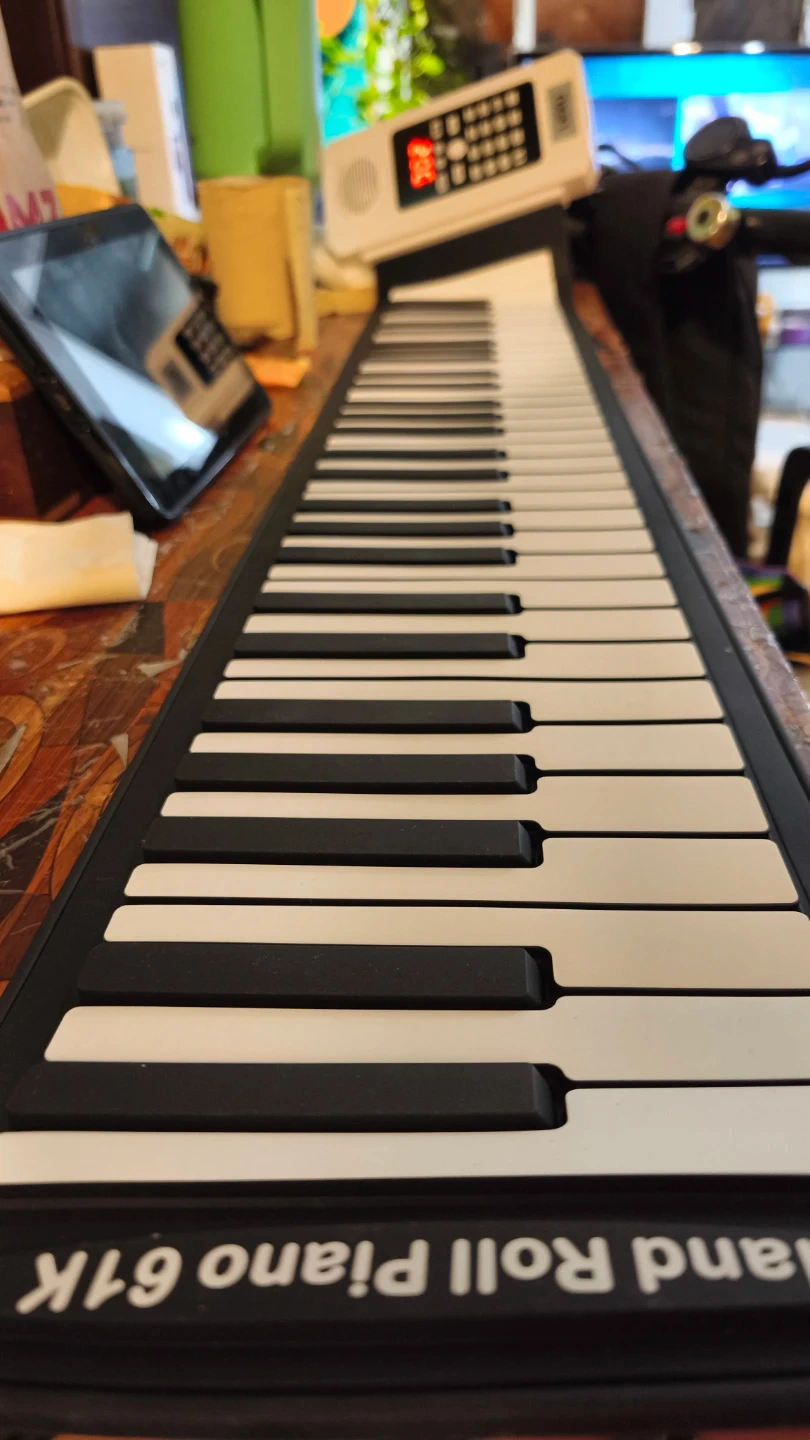 Selling a LEXU Hand Roll Piano 61Key. It has 128 tone, 14 demo and 128 ryhthm. It's in great shape and ready for a new musician. Perfect for beginners or anyone needing a portable keyboard for practice or travel. Took it out to test that it works and we threw the box away to make it easy to put it in our luggage as we brought it brand new from overseas. Kept all the components and manual that came with it.