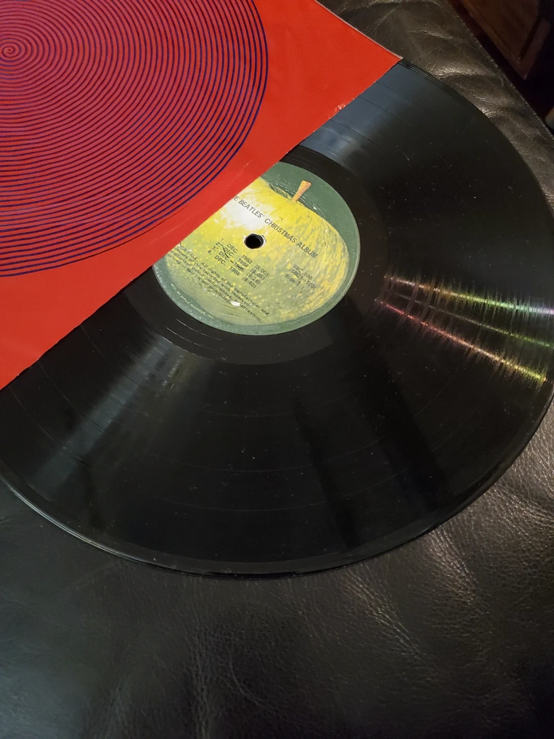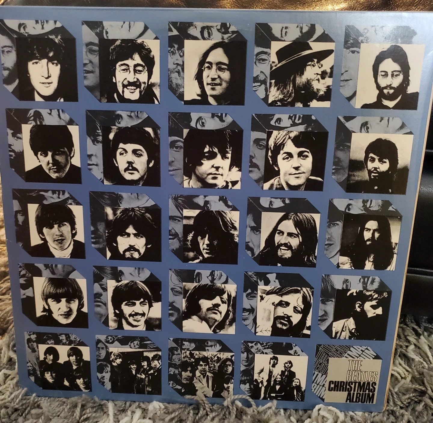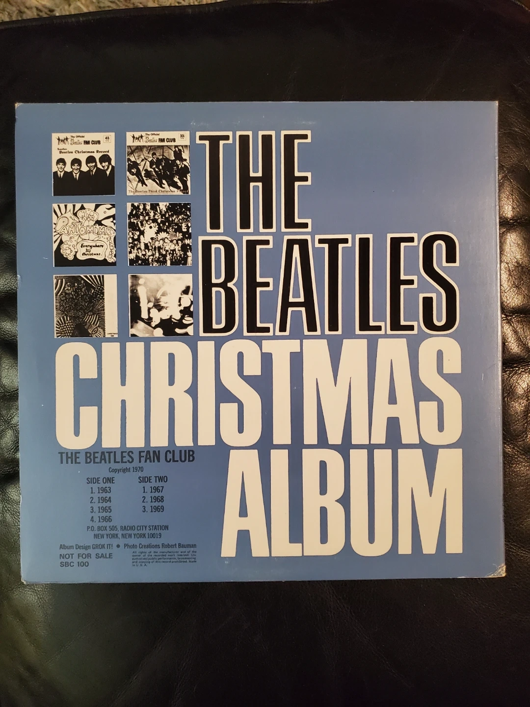 Selling The Beatles Christmas Album. It's from The Beatles Fan Club. Side One includes tracks from 1963, 1964, 1965, and 1966. Side Two features tracks from 1967, 1968, and 1969.