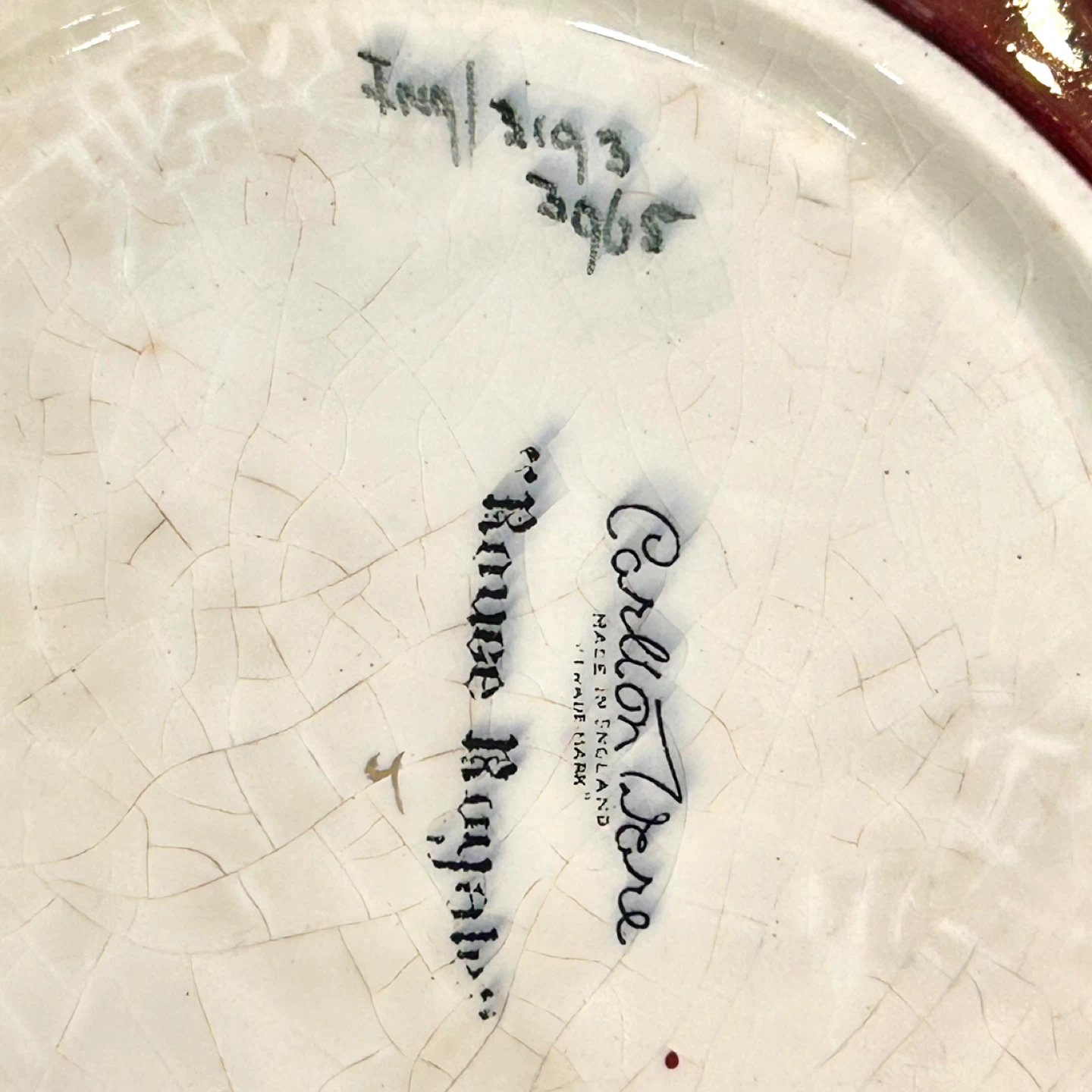 The base bears the original Carlton Ware “Made in England” script mark with factory pattern numbers, confirming pre-WWII production. Glaze crazing is present, consistent with age and entirely typical for Rouge Royale pieces of this era. No cracks, repairs, or modern restoration observed.
