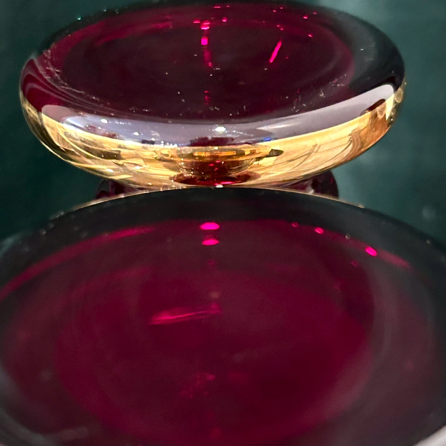 • Deep cranberry/ruby glass with substantial weight
