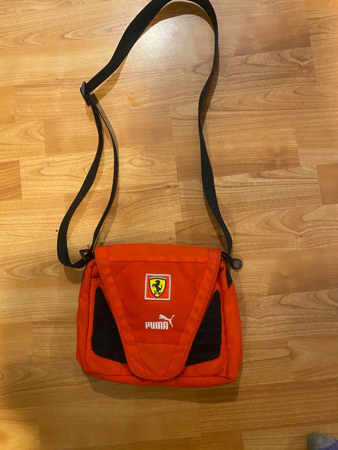 This is a Puma Ferrari large messenger crossbody bag, perfect for carrying your essentials with style. It's in good condition and ready for a new home. Great for any Ferrari or Puma enthusiast!