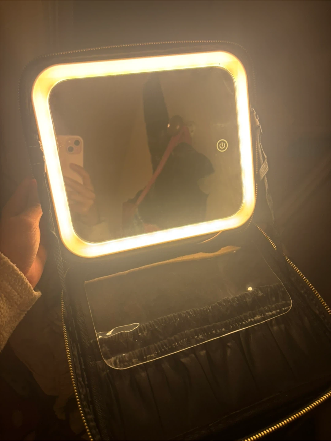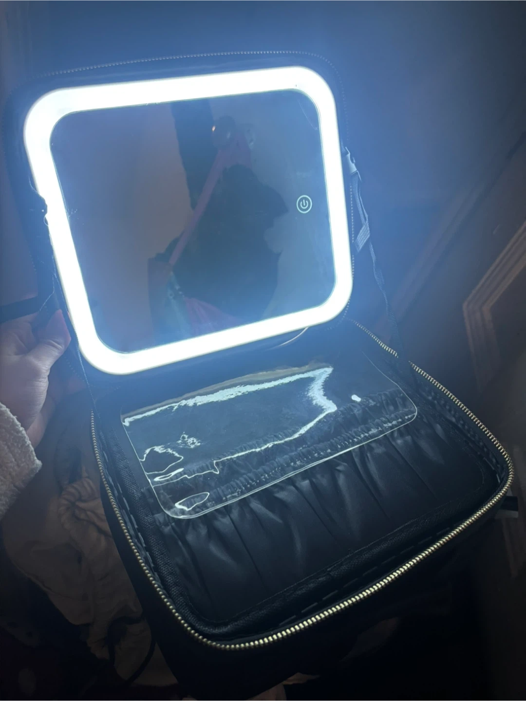 Selling a black makeup bag from Naeland! It features a lighted mirror, perfect for on-the-go touch-ups or travel