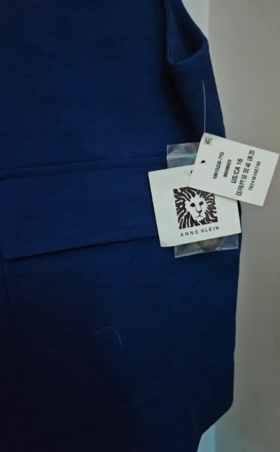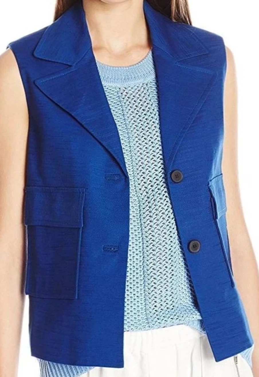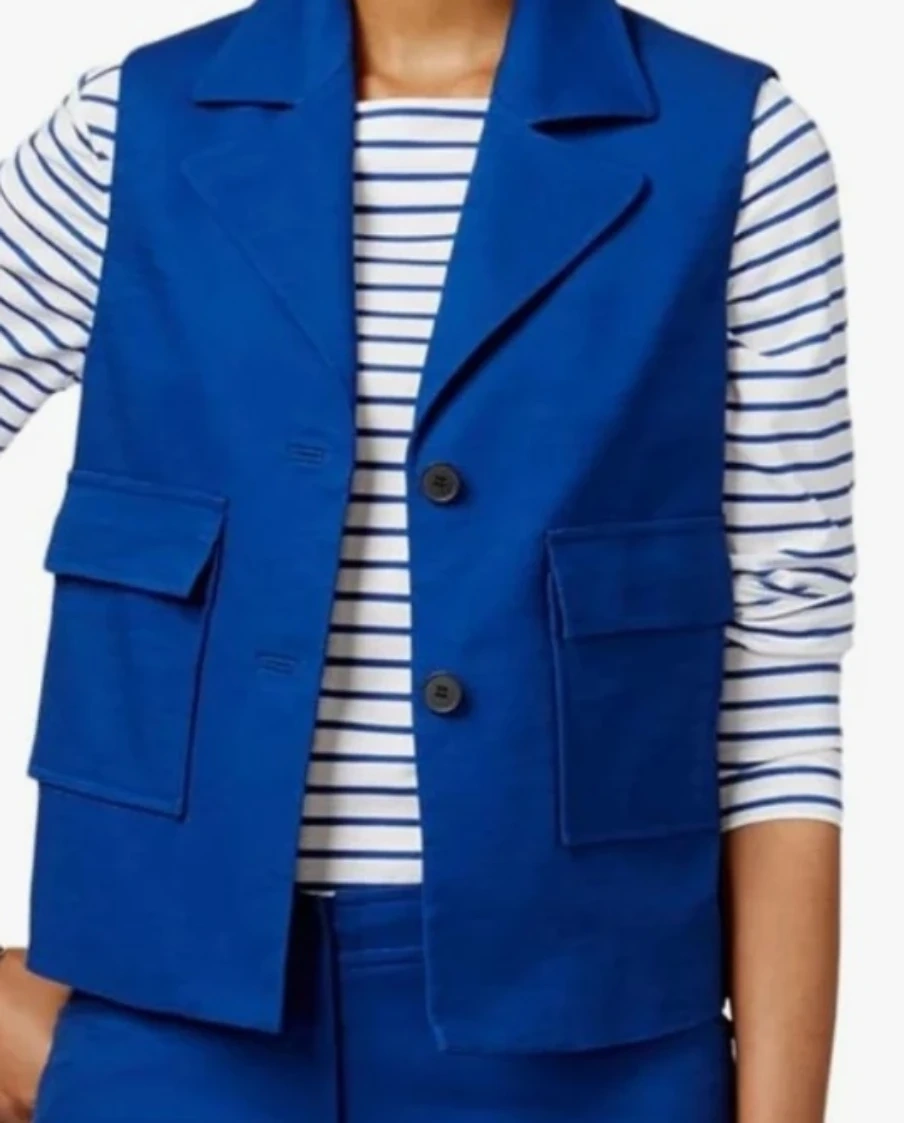 Anne Klein Mariner vest in a vibrant blue colour, size 16. This stylish vest features a classic design with functional pockets. Perfect for layering and adding a pop of colour to your outfit!