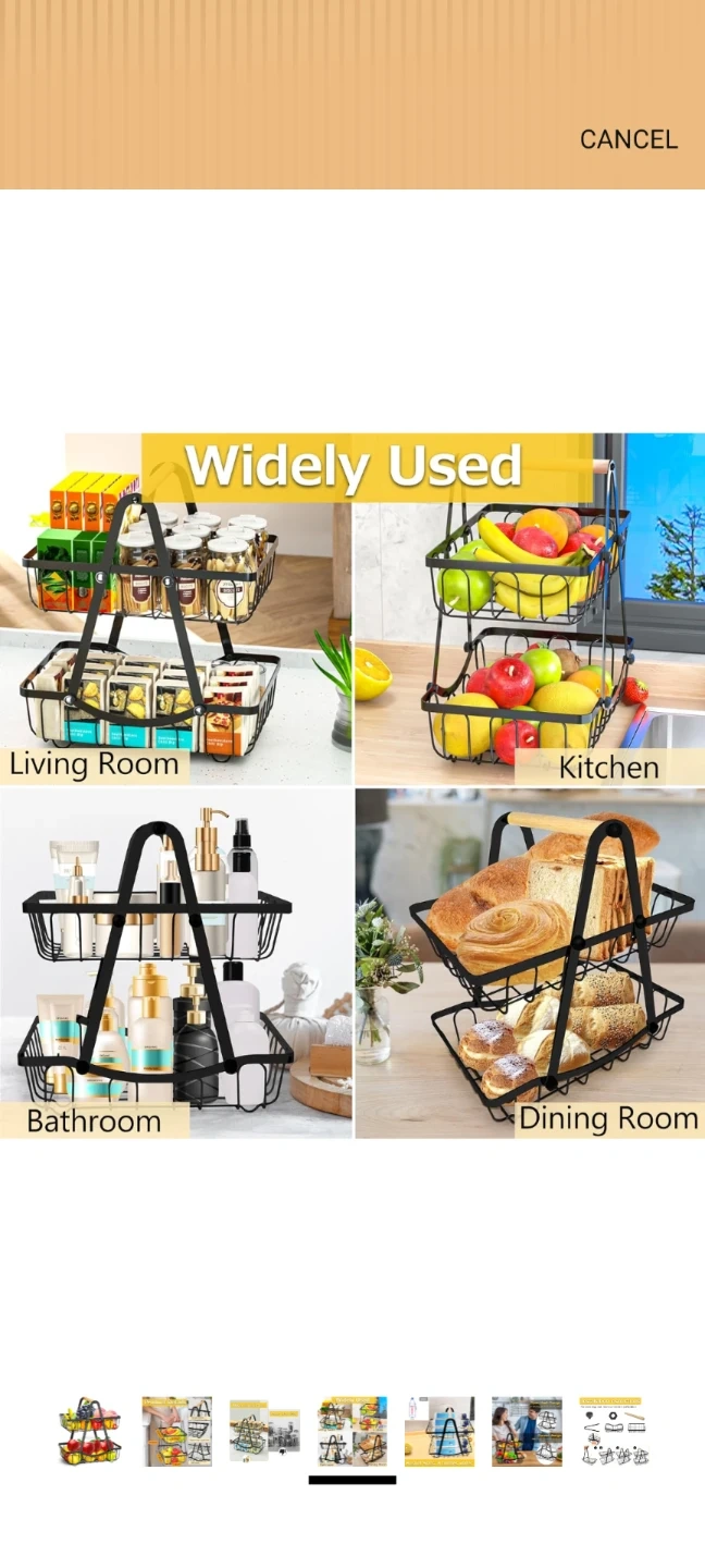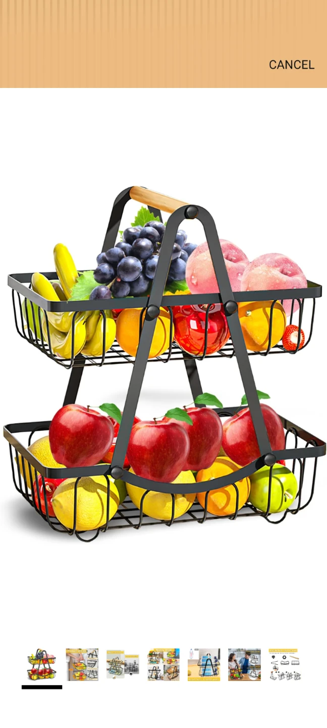 This two-tier metal fruit basket is perfect for organizing your kitchen or pantry! It's easy to assemble with no tools required.