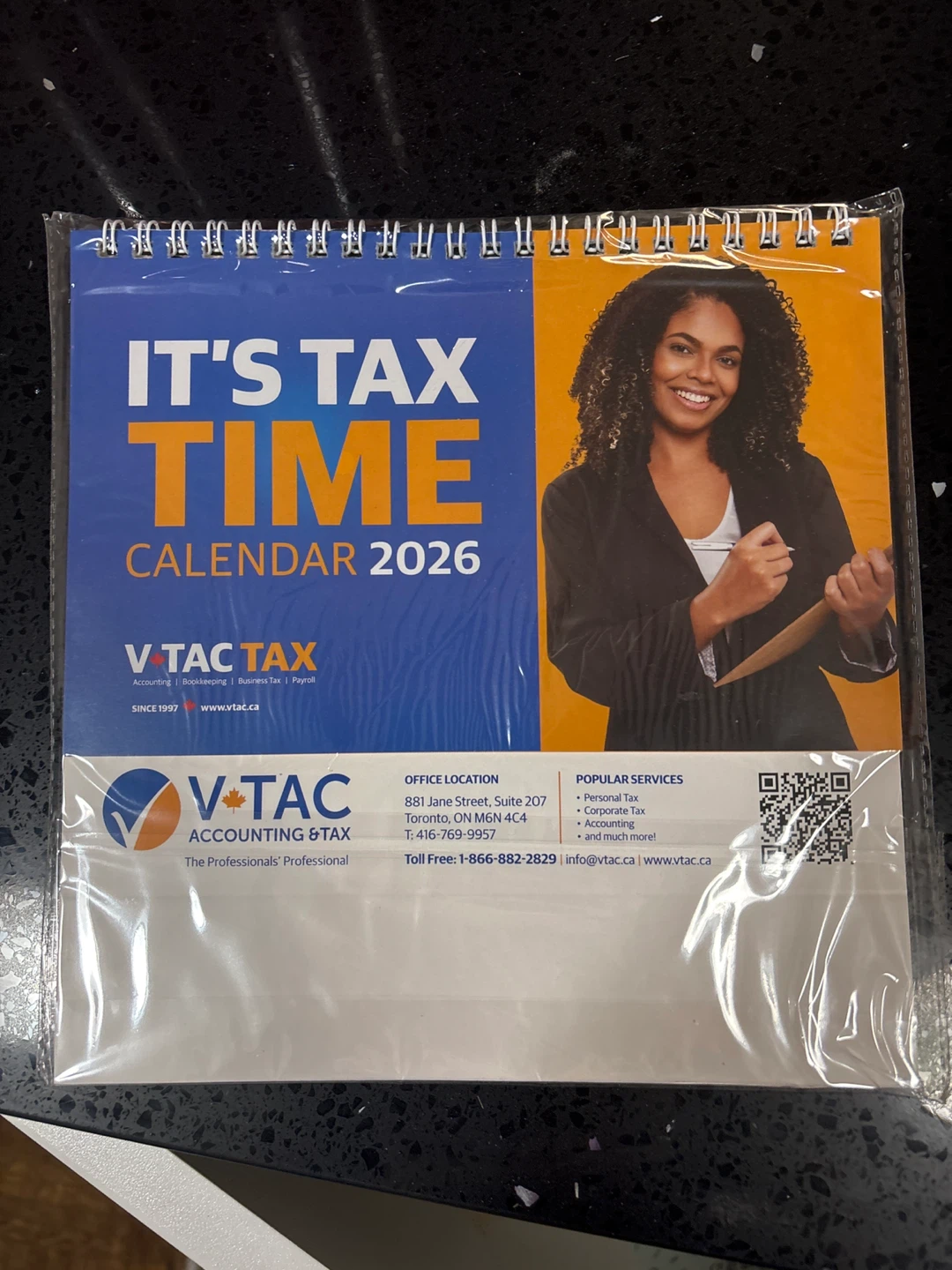 I have a brand new V-TAC Tax Time Calendar for 2026! It's still sealed in its original packaging. Perfect for keeping track of important tax dates and deadlines