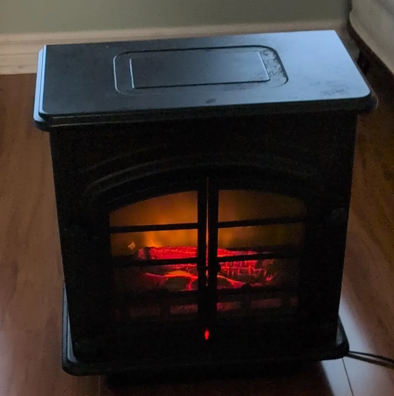 Selling a black electric fireplace heater. It adds a cozy ambiance to any room! Perfect for those chilly evenings