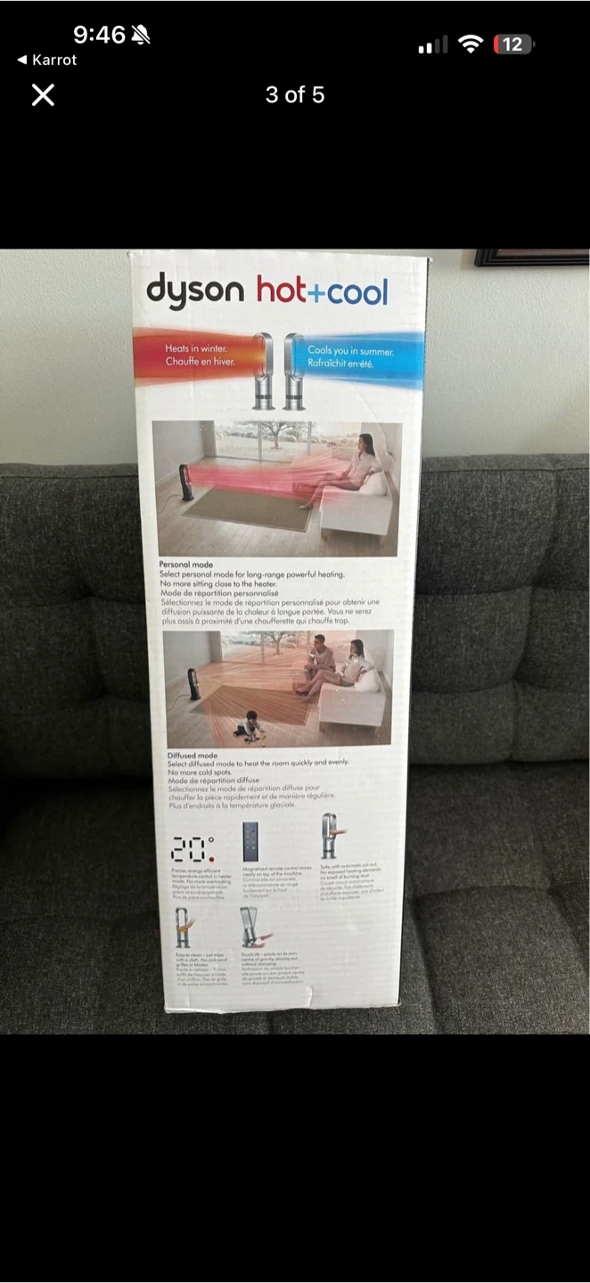 Buy & SellDyson Heater + Cooling Fan tower -brand new in packagingDyson Heater + Cooling Fan tower -brand new in packaging$425Brand new in box. See pictures for features. New in store is $600 + with tax.ConditionNewBrandDysonWHERE TO MEETCheck LocationView MapSELLERBillyNash N100 reviews0 chats·1 favorites·21 viewsSEND CHAT TO SELLERHi Billy! I’m interested in your listing.Hi Billy! I’m interested in your listing.Get the Karrot app to chatSign In to chat