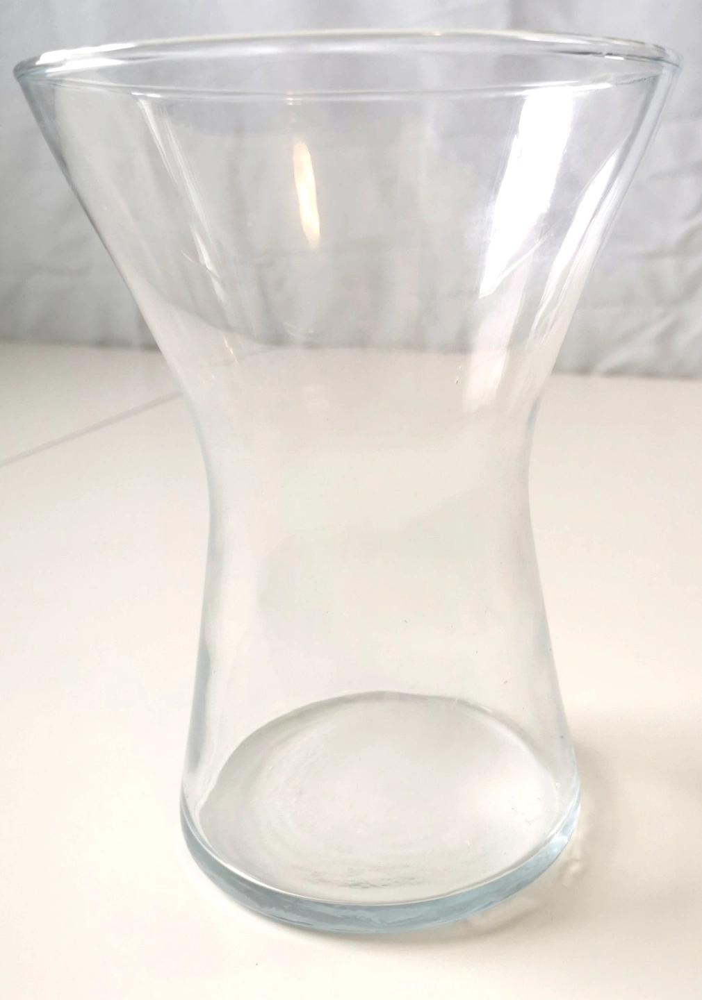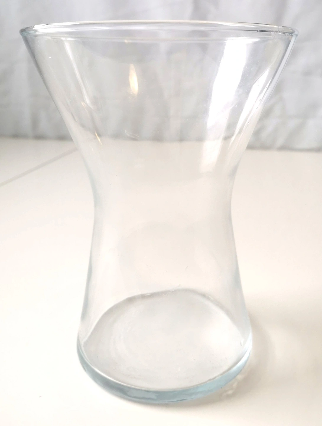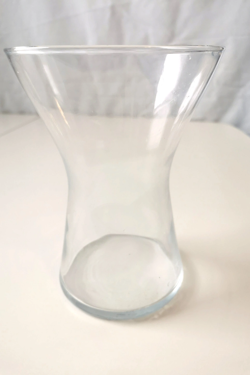 Vintage Clear Glass Hourglass Vase - 7.5" Tall Belly Shape