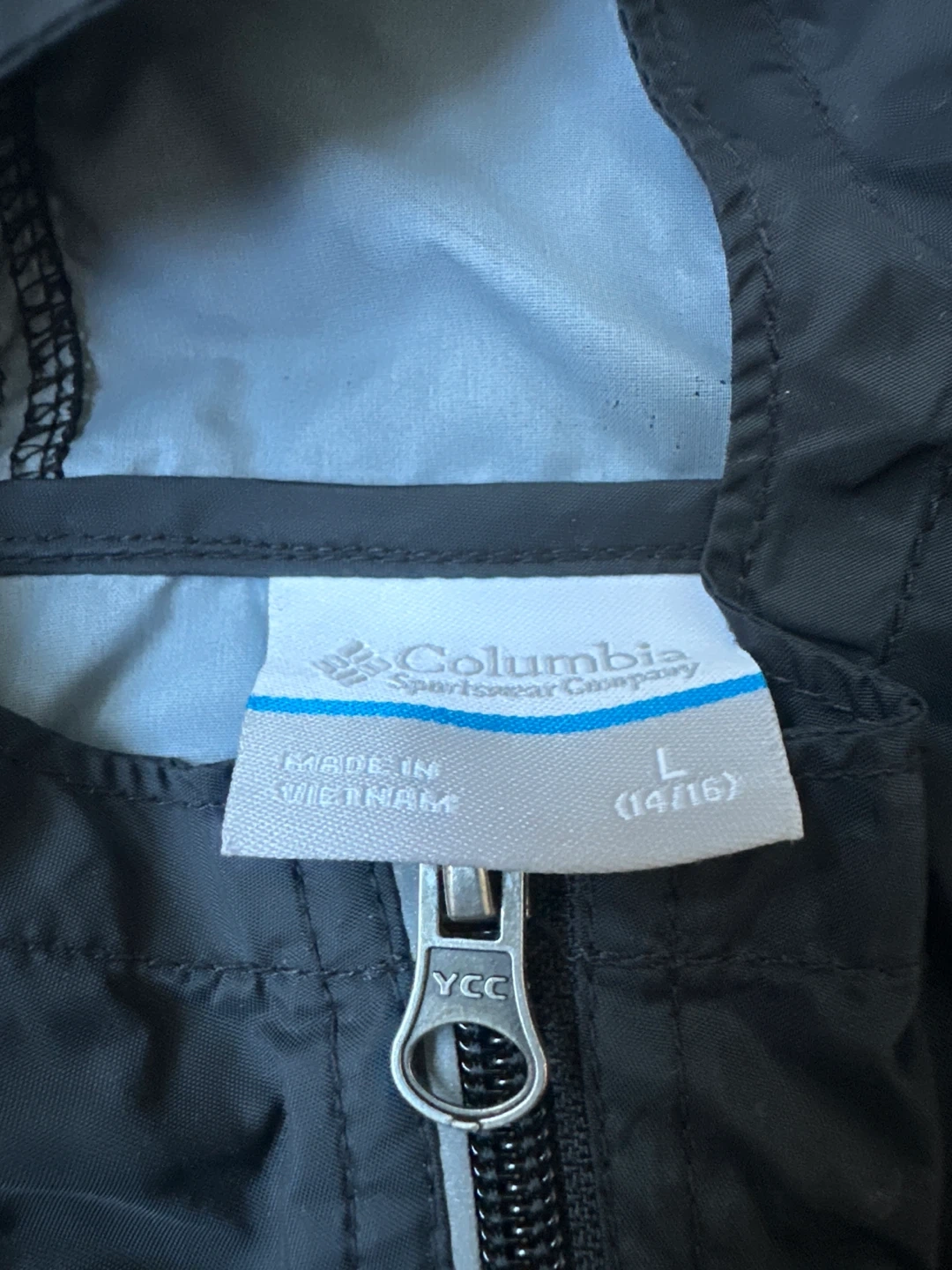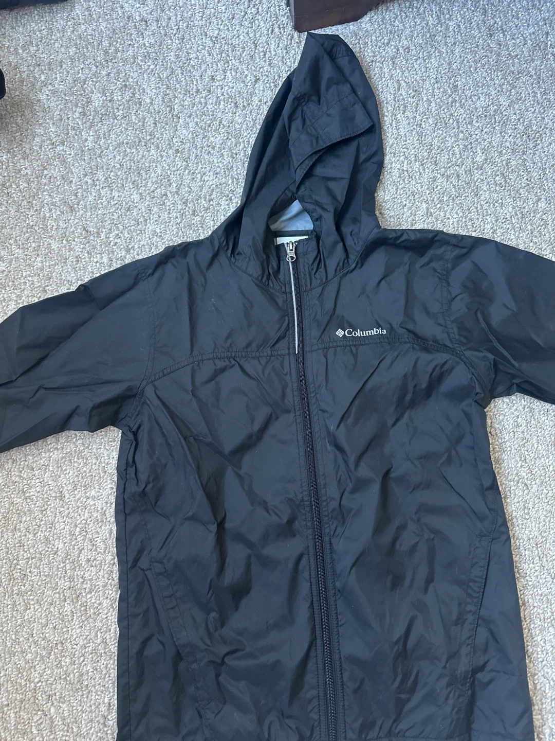 Selling a Columbia black rain jacket in size L (14/16). It's in great condition and perfect for those rainy days!