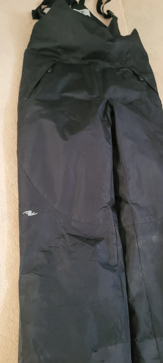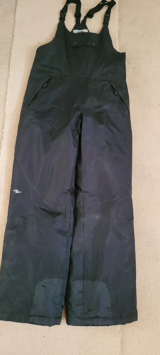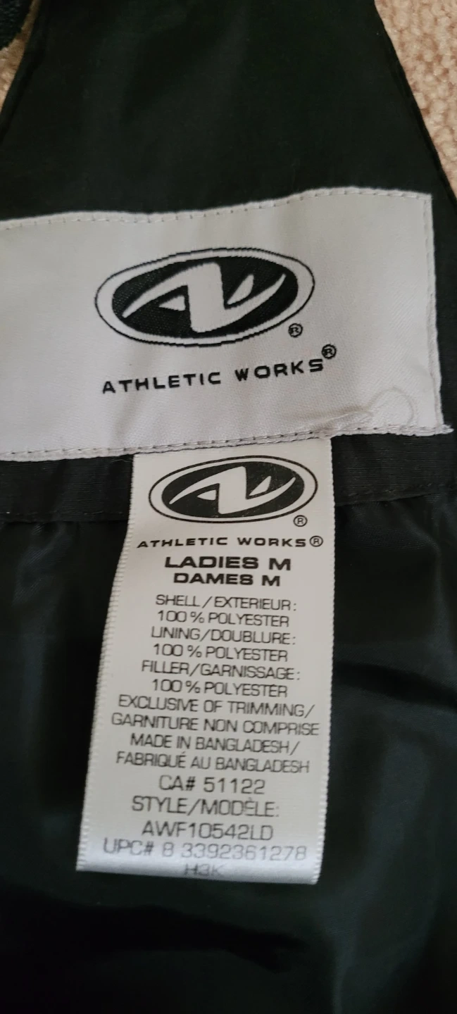 Selling a pair of Athletic Works ladies' snow pants in size medium. They're black and made of 100% polyester for the shell, lining, and filler. Perfect for staying warm and dry this winter!