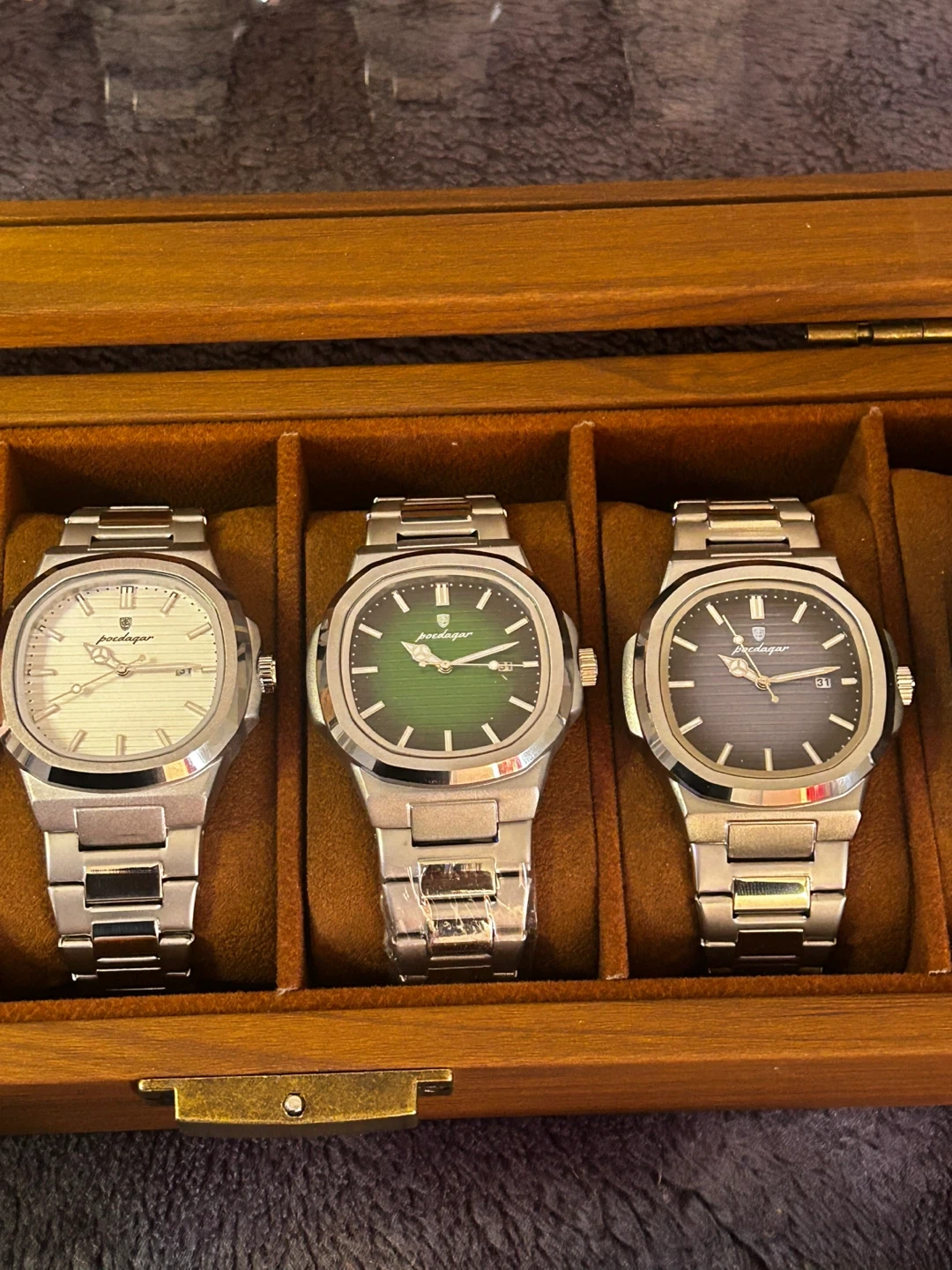 Selling a collection of Poedagar men's wristwatches. They come in a variety of styles and colours. The watches are in good condition and come with their original box. $80 for watches