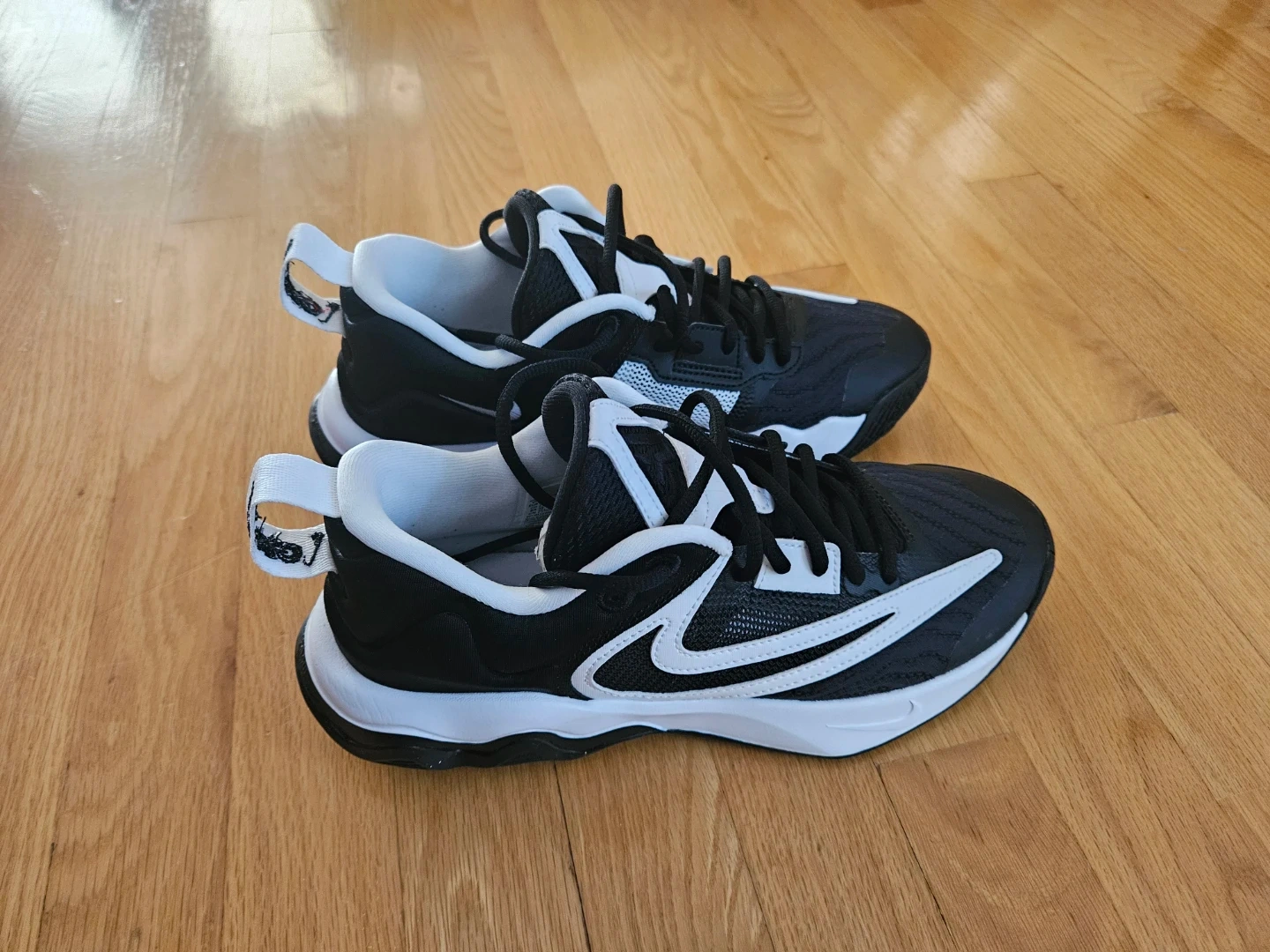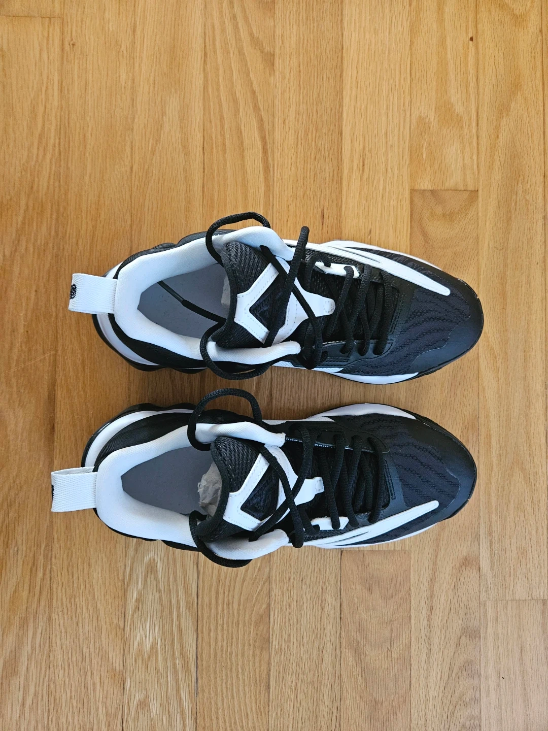 They're in great shape and ready for the court or just casual wear. The black and white colourway is super versatile. These shoes are lightweight and designed for agility, so you can move comfortably. They're also super durable