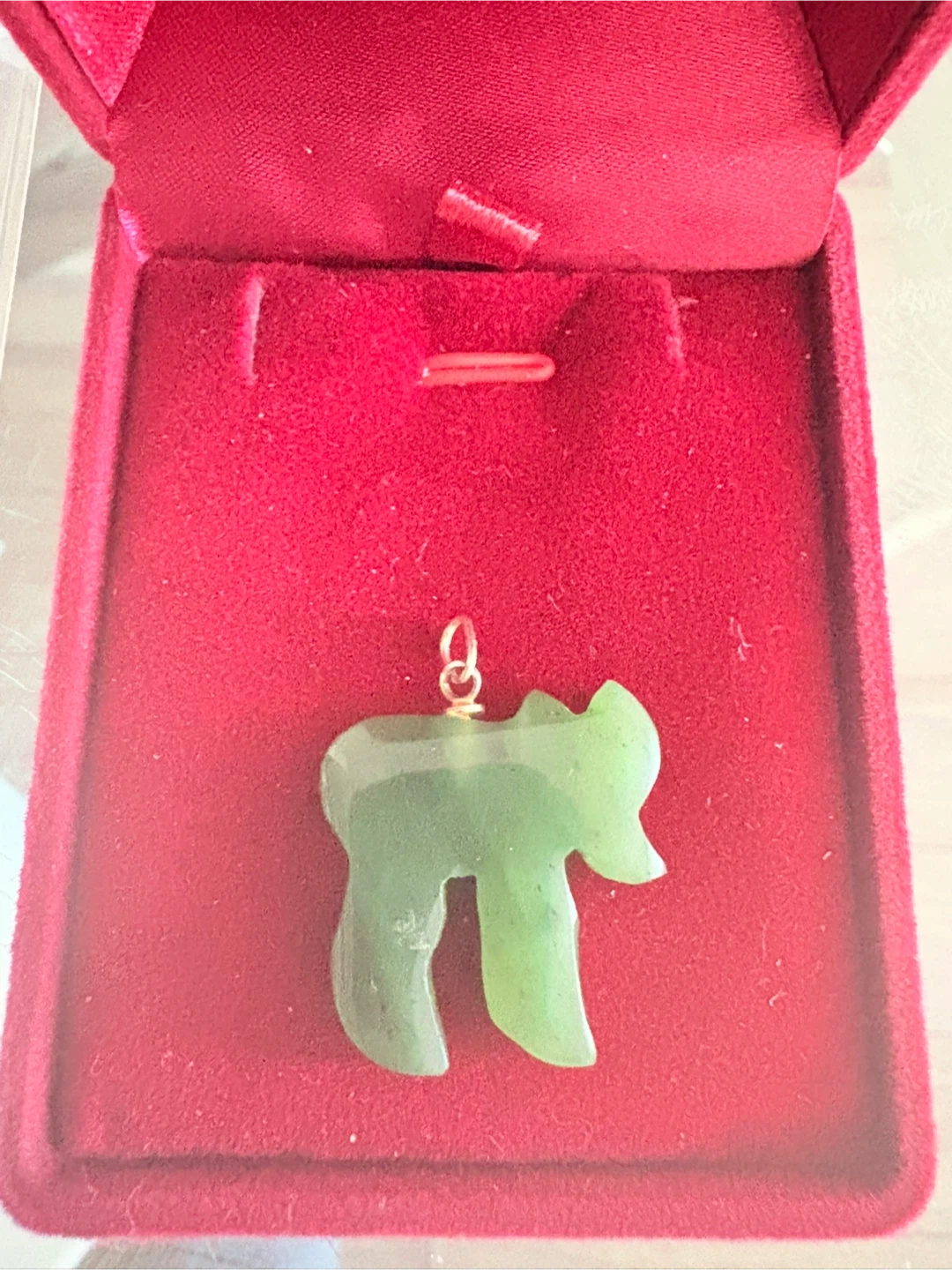 Selling a 14k real jade lovely green jade Chai pendant. It comes in a red box, perfect for gifting or keeping it safe. A beautiful piece to add to your collection!