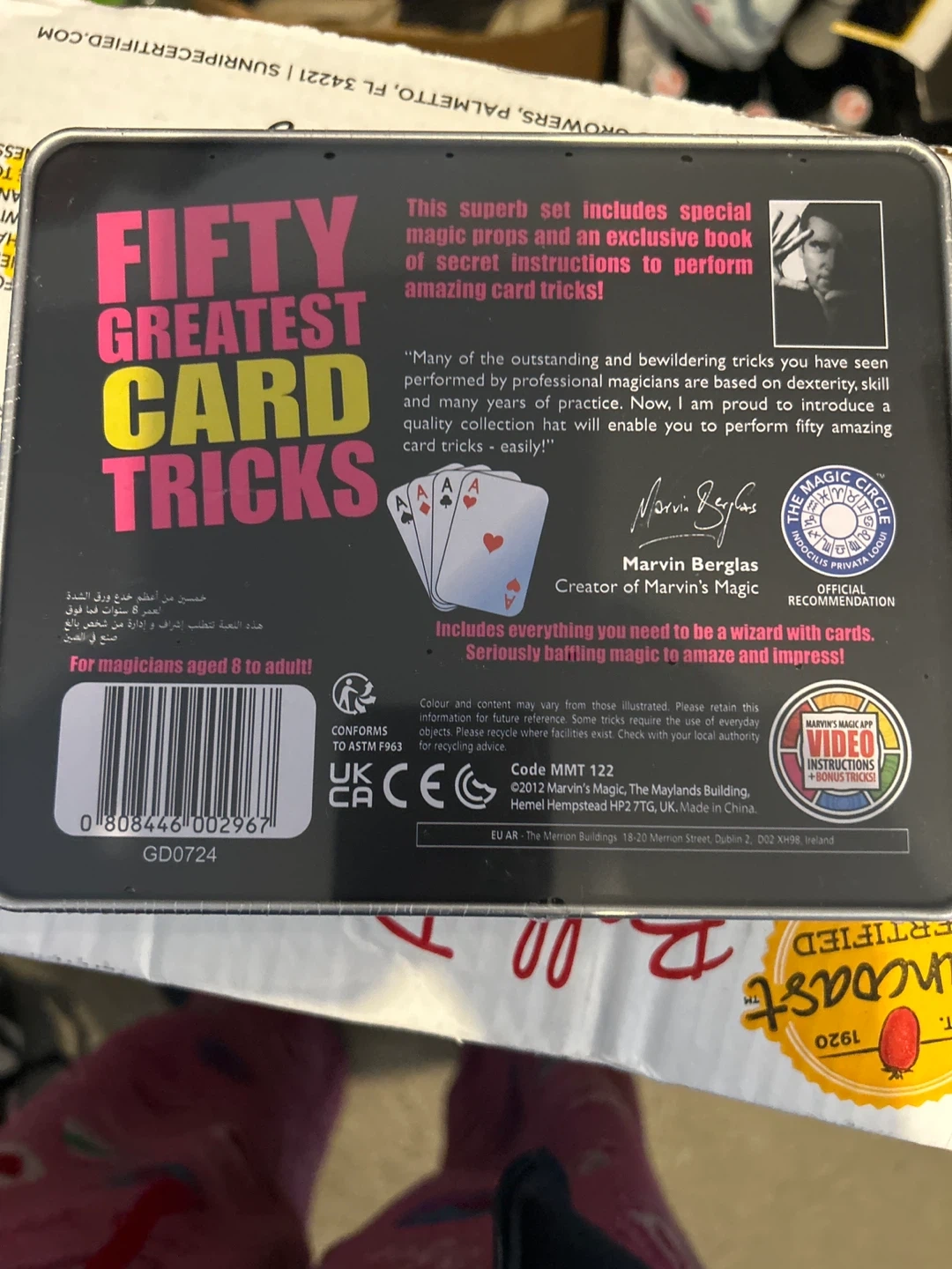 Selling a Marvin's Magic Fifty Greatest Card Tricks set! It includes everything you need to amaze and impress. This set includes special magic props and an exclusive book of secret instructions to perform amazing card tricks! For magicians aged 8 to adult!