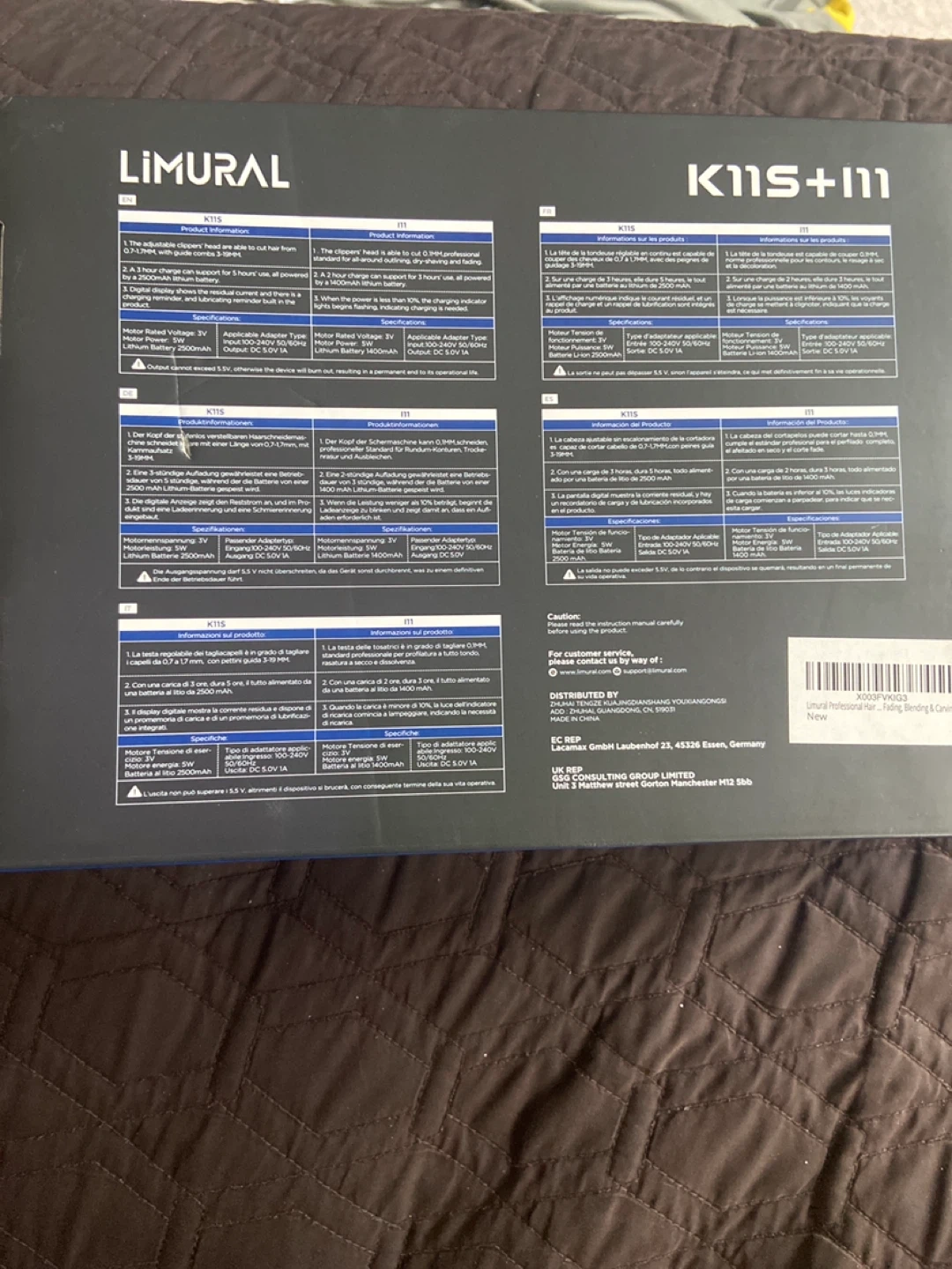 Selling a brand new LIMURAL K11S+I11 High Performance Pro Clippers Kit! This set comes with two clippers and all the accessories in the original box. The head can support 5 hours of use when fully charged. Great for at-home haircuts!