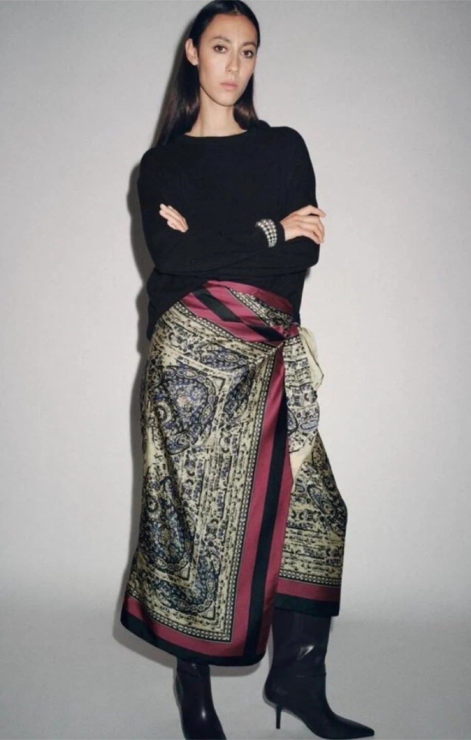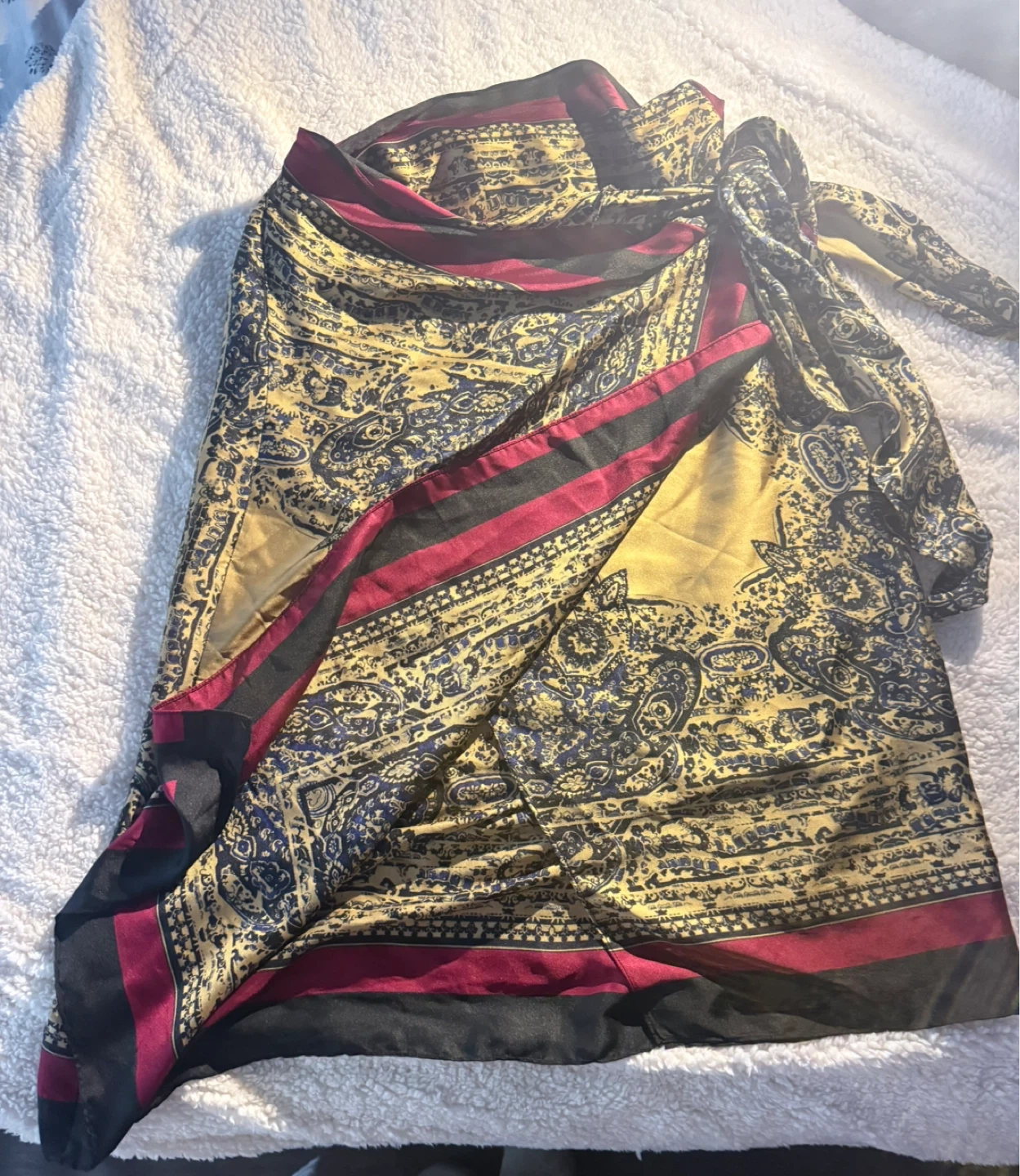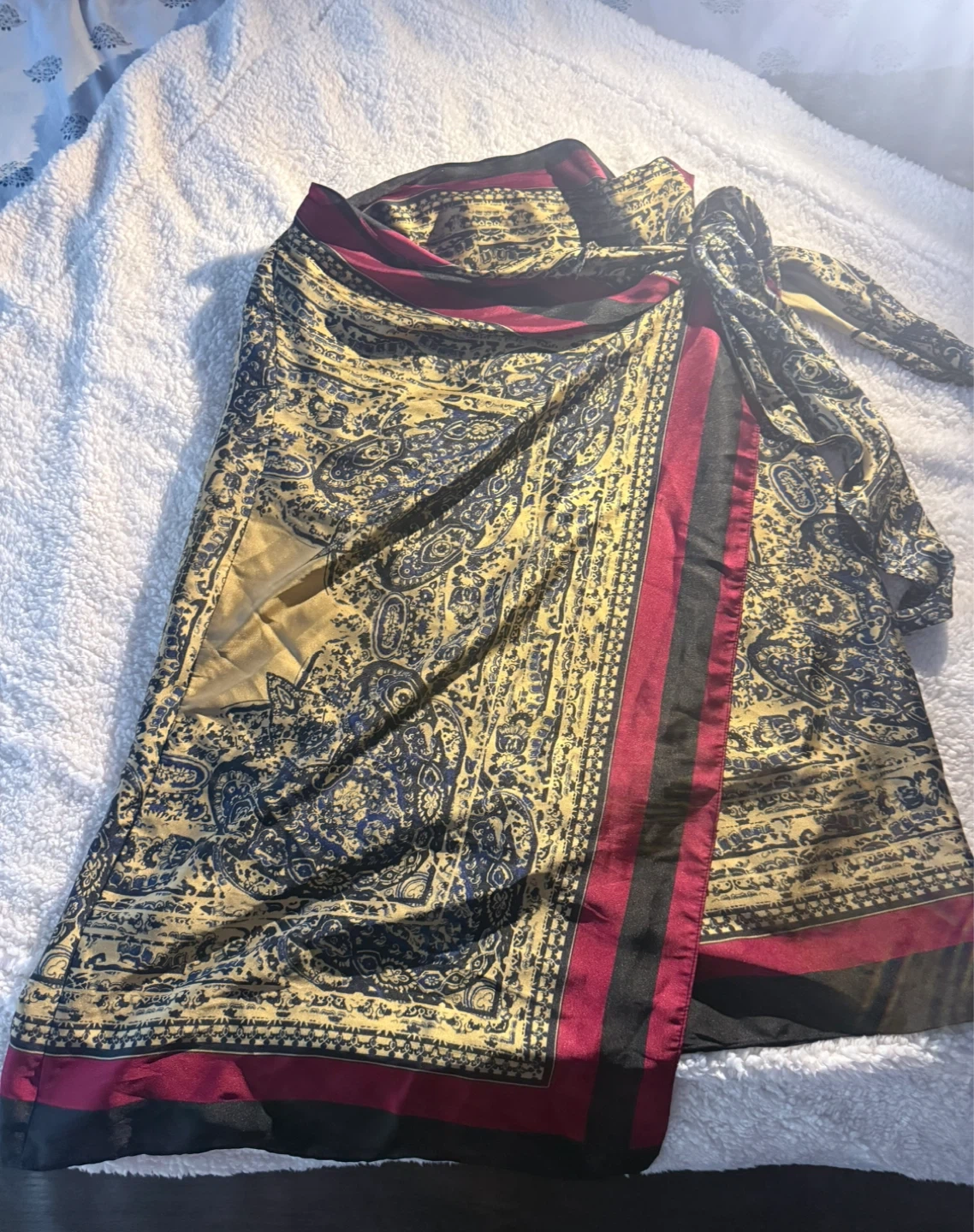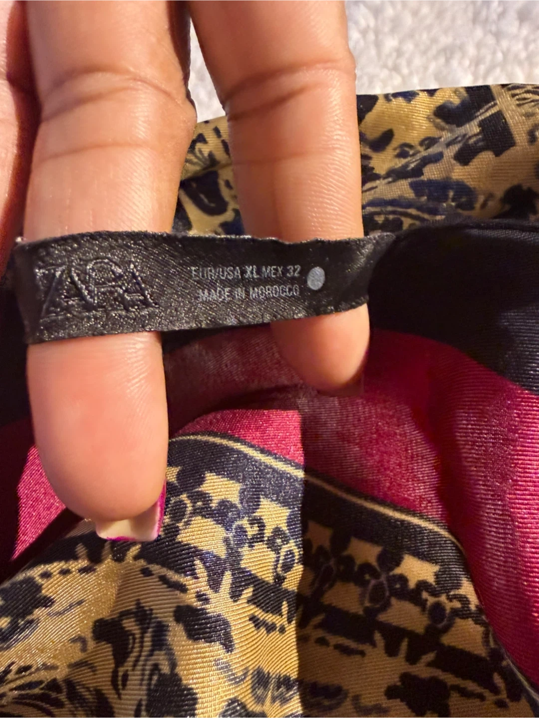 Zara skirt in size XL. It's a wrap style with a unique pattern. The label indicates it's made in Morocco
