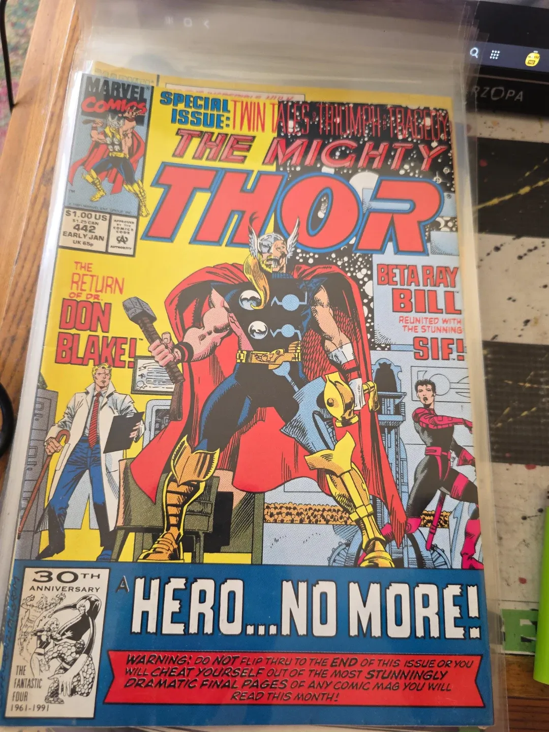 Selling a vintage copy of The Mighty Thor comic book from Marvel Comics. This is issue #442 from early January. It's a special 30th Anniversary issue featuring the return of Dr. Don Blake and Beta Ray Bill! The Fantastic Four also make an appearance in this issue.