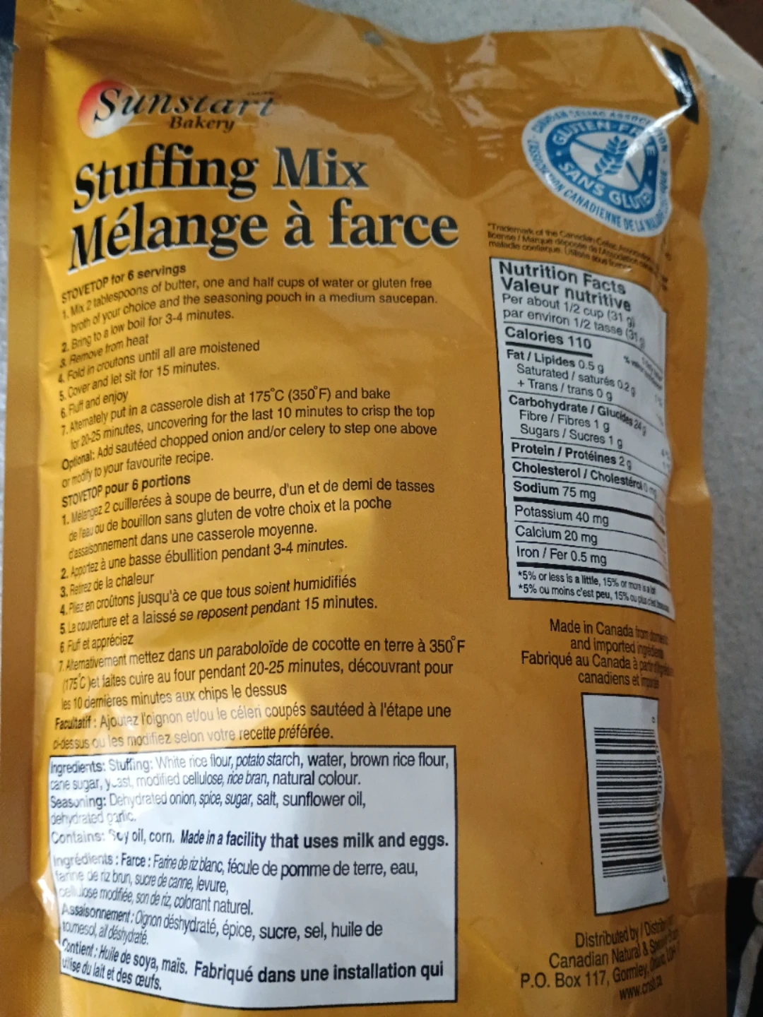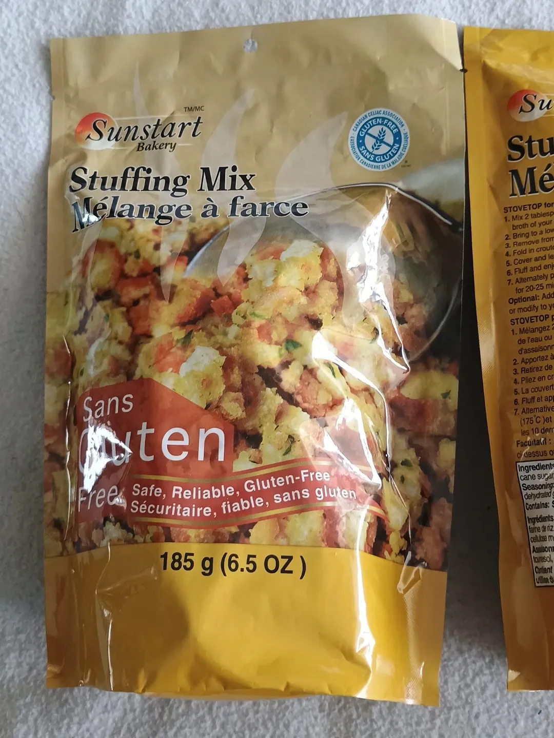 I have several bags of delicious Sunstart Bakery Stuffing Mix for sale! It's gluten-free and comes in a 185g (6.5 OZ) package. Perfect for your next family dinner or holiday meal! I'm keeping some for myself 👍