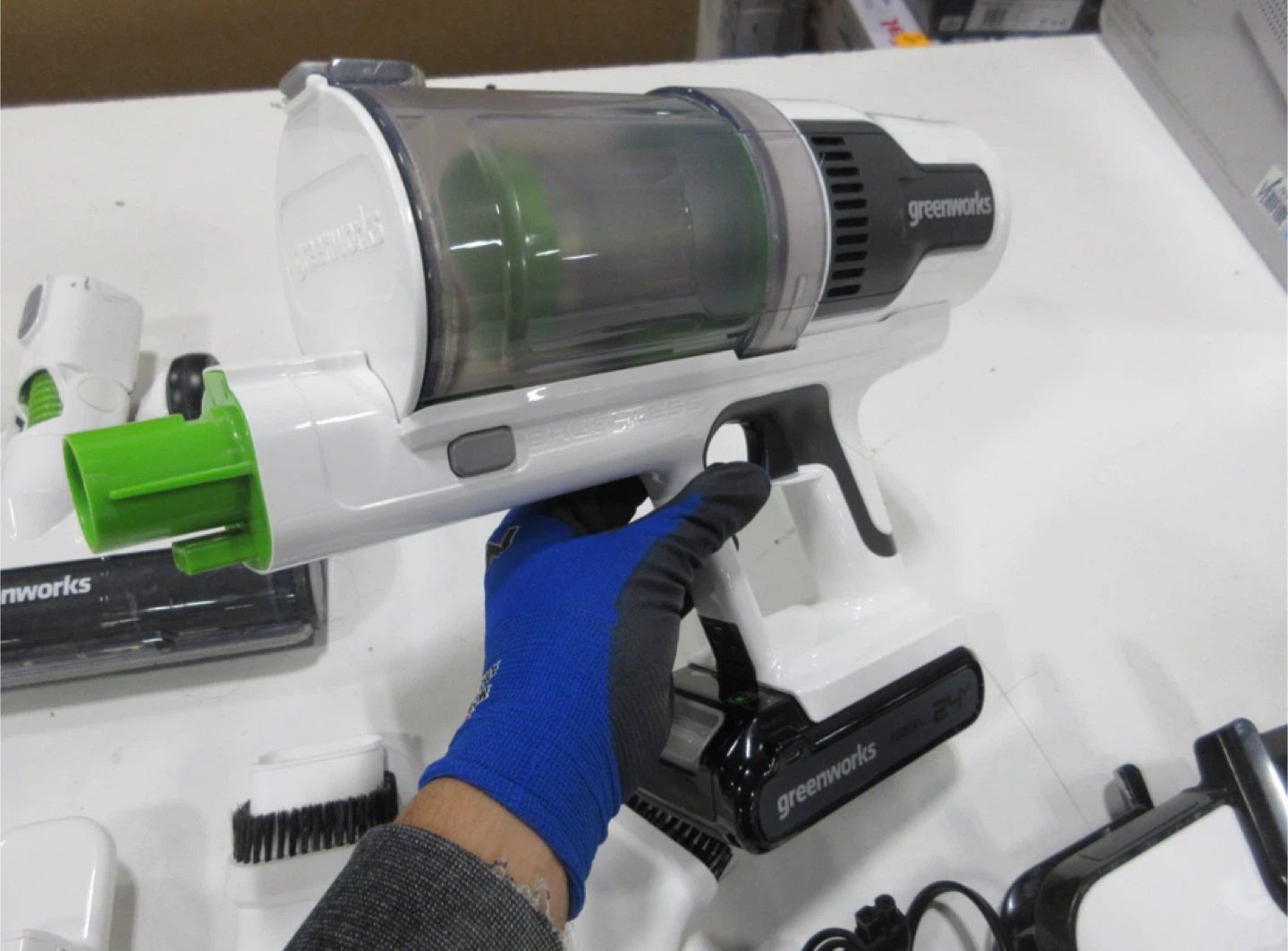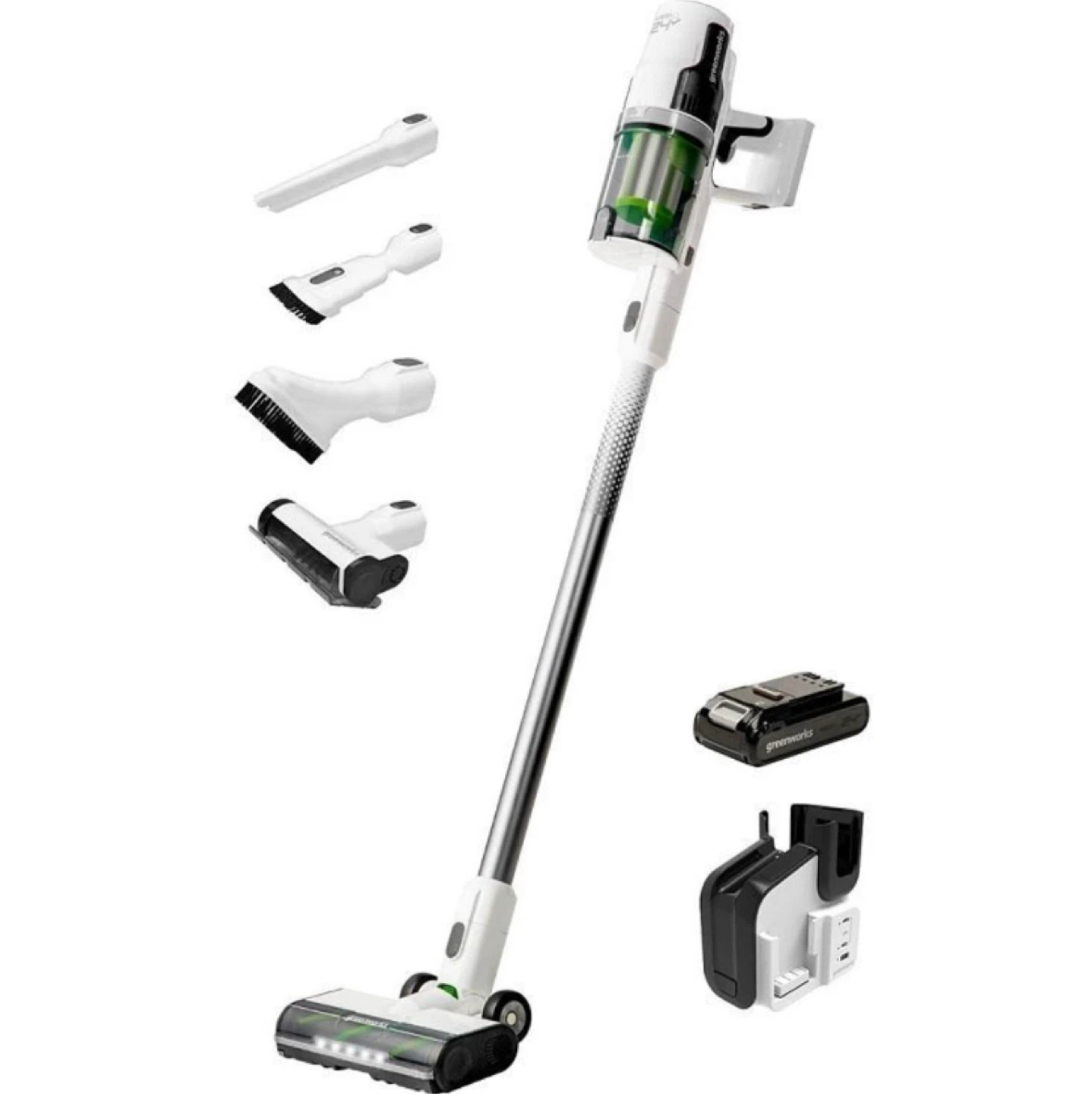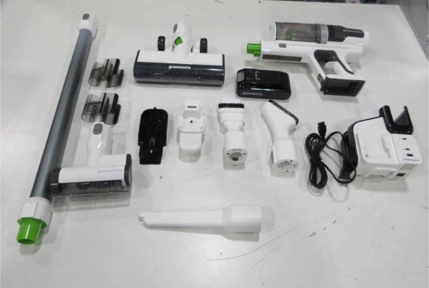 Selling a Greenworks cordless stick vacuum! It comes with a variety of attachments to help you tackle any cleaning job. Includes the charger and all the accessories shown in the photos, and the original box too. Great for quick cleanups around the house!