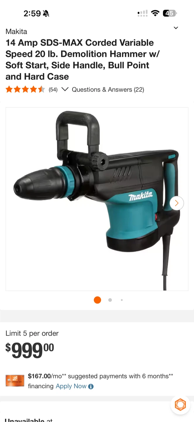 1 / 31 / 3Buy & SellMakita HM1213C Demolition HammerMakita HM1213C Demolition Hammer$500Selling a used Makita HM1213C demolition hammer. It comes in a case, ready for your next project!ConditionLike newWHERE TO MEETCheck LocationView MapSELLERverifiedNejiHurontario18010 reviews0 chats·0 favorites·43 viewsSEND CHAT TO SELLERHi Neji! I’m interested in your listing.Hi Neji! I’m interested in your listing.Get the Karrot app to chatSign In to chat