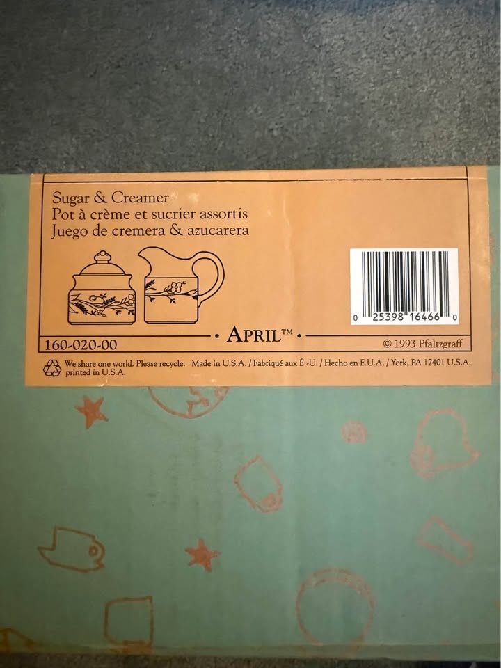 Pfaltzgraff April sugar and creamer set