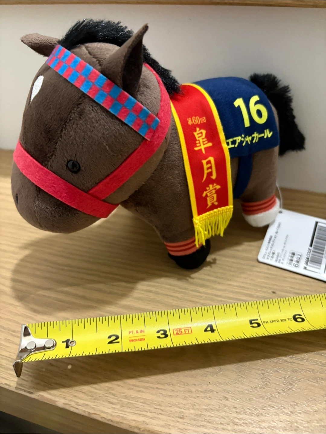 The #16 on the plushie is a direct nod to the Satsuki Sho, which is a major plot point in her character story. In the Uma Musume world, winning that race is one of her proudest calculated victories.