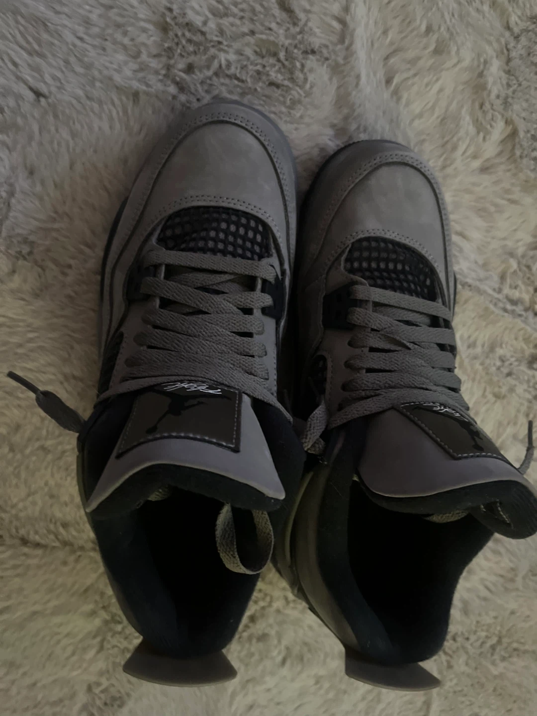 Selling a pair of Air Jordan 4 Retro in a stylish grey colour. These shoes are in great condition and ready for a new owner. Perfect for adding a touch of classic style to your wardrobe!
